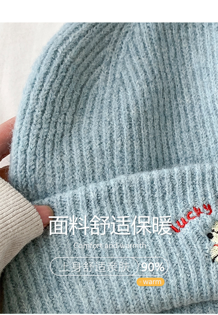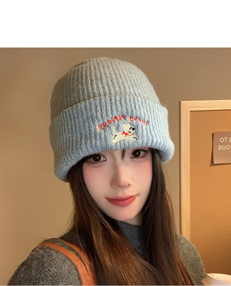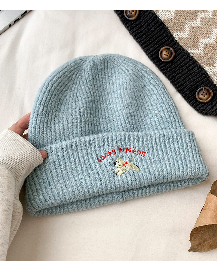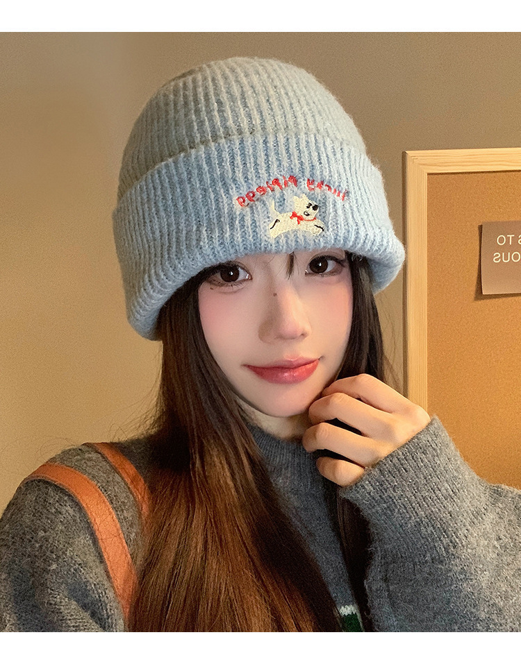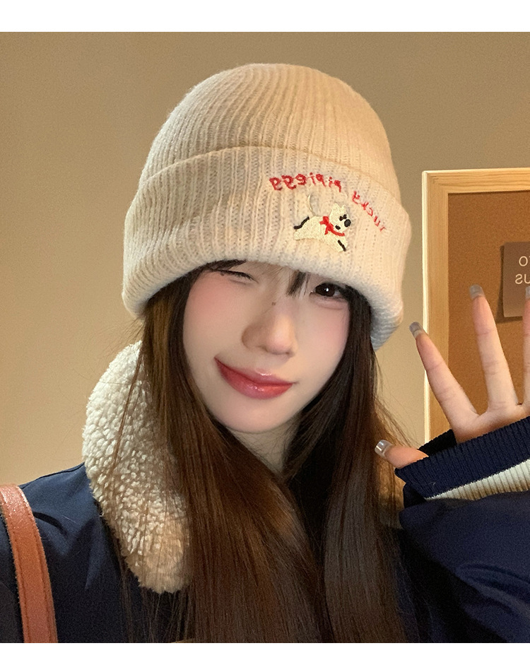 韩系可爱小狗刺绣标针织帽女款冬季保暖时尚百搭毛线帽护耳休闲帽