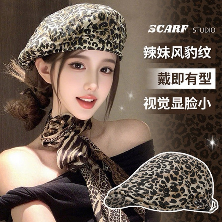 美式复古辣妹豹纹前进帽女y2k小众街头高颜值显脸小日系休闲帽子