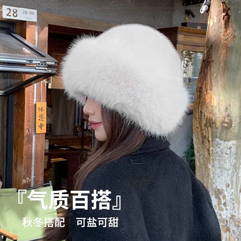 秋冬仿皮蒙古毛护耳帽女款新款毛绒加厚时尚洋气百搭防寒保暖必备