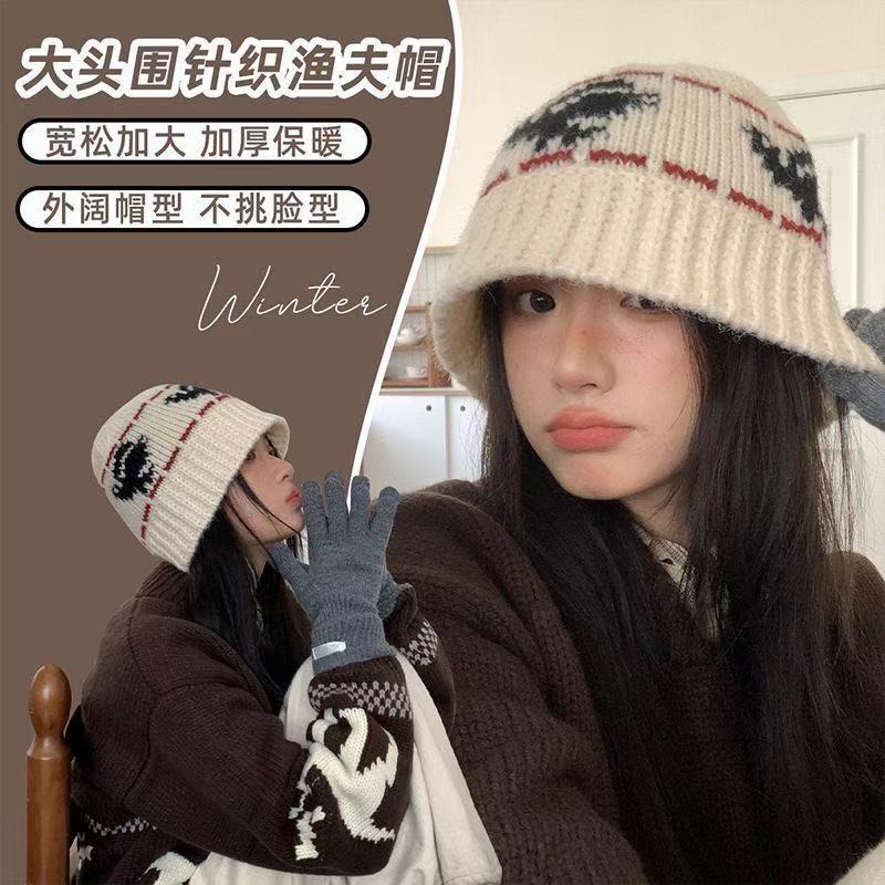 黑色复古针织帽女2025冬季韩系百搭显脸小毛线水桶帽防寒保暖帽子