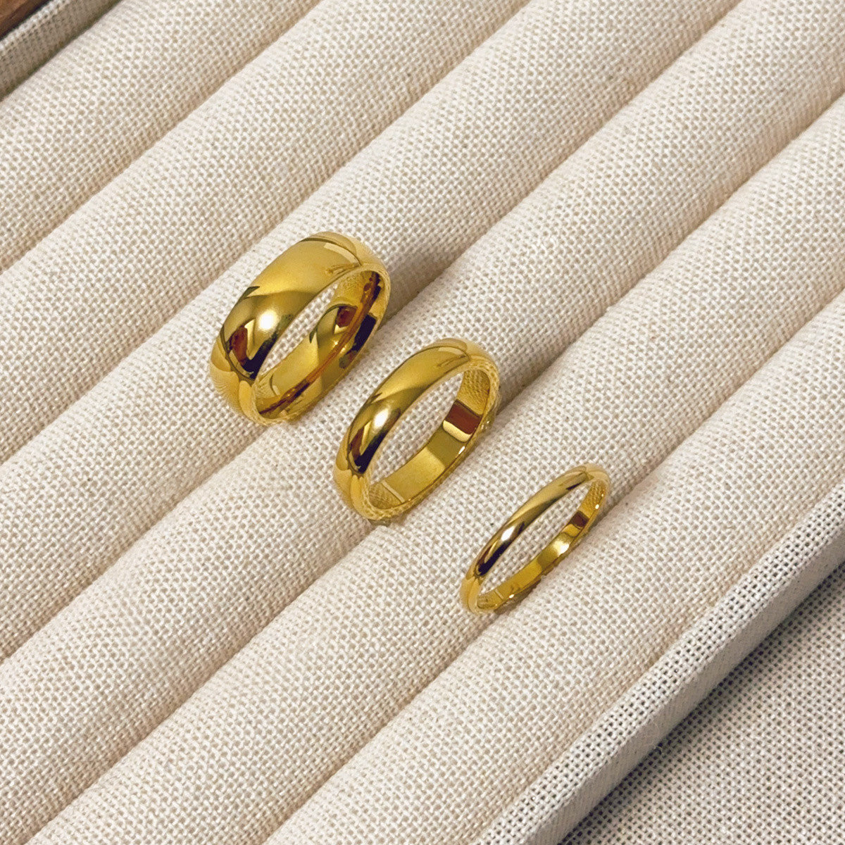 チタン鋼の金色の光沢のある素輪の指輪の女性は色を落とさない球面カップルのペアリングをシンプルにしています。