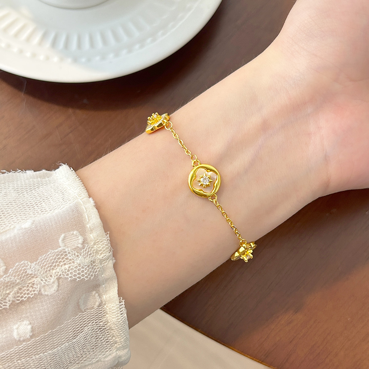 個性的なデザインの韓国風ゴールドカラーの多用途で色褪せないチタン鋼ブレスレット、高級感と上品な白さを演出する繊細なチェーンコレクション