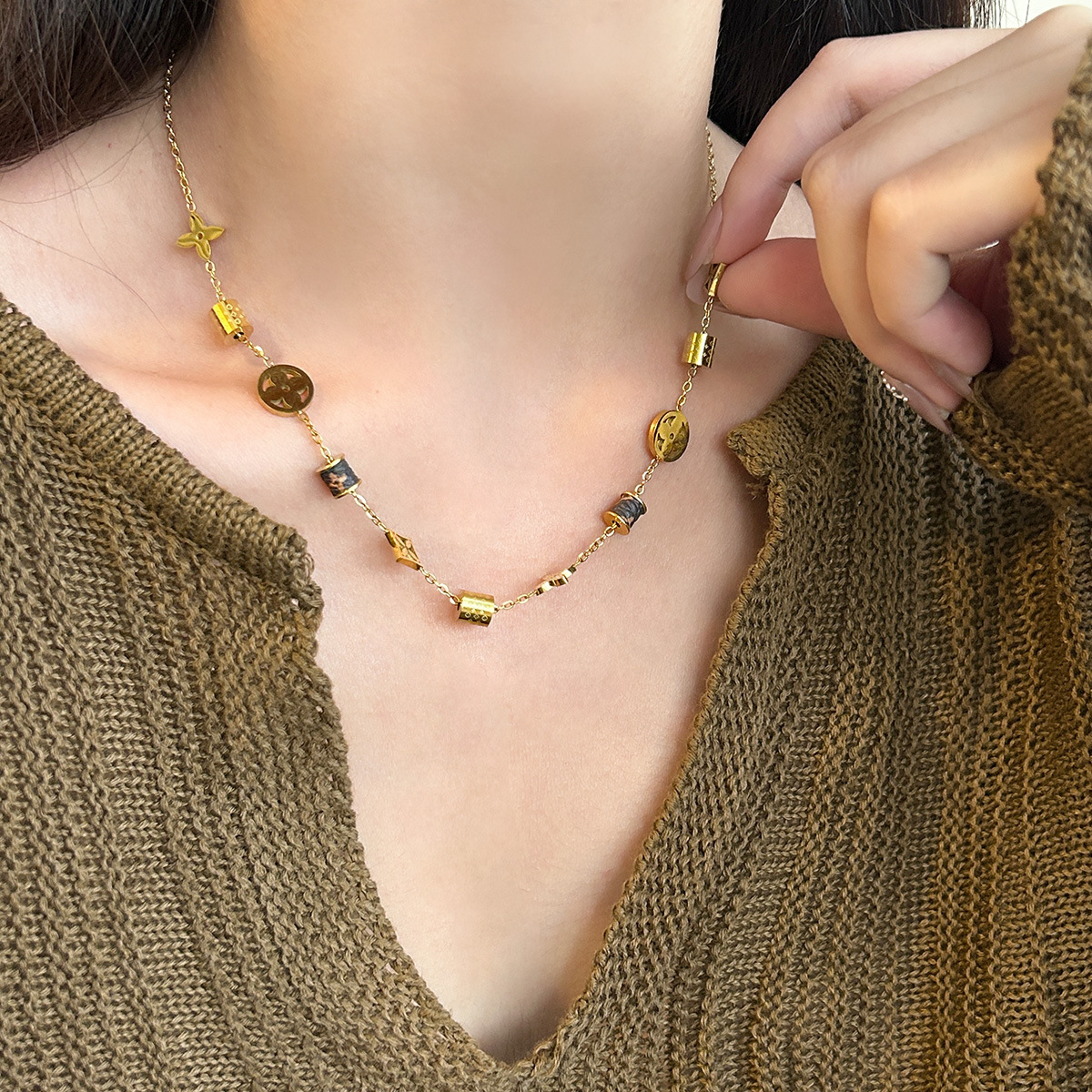国境を越えたファッションの大衆がチタン鋼のネックレスをデザインして通勤している高級感のある鎖骨鎖の真金メッキの保色集
