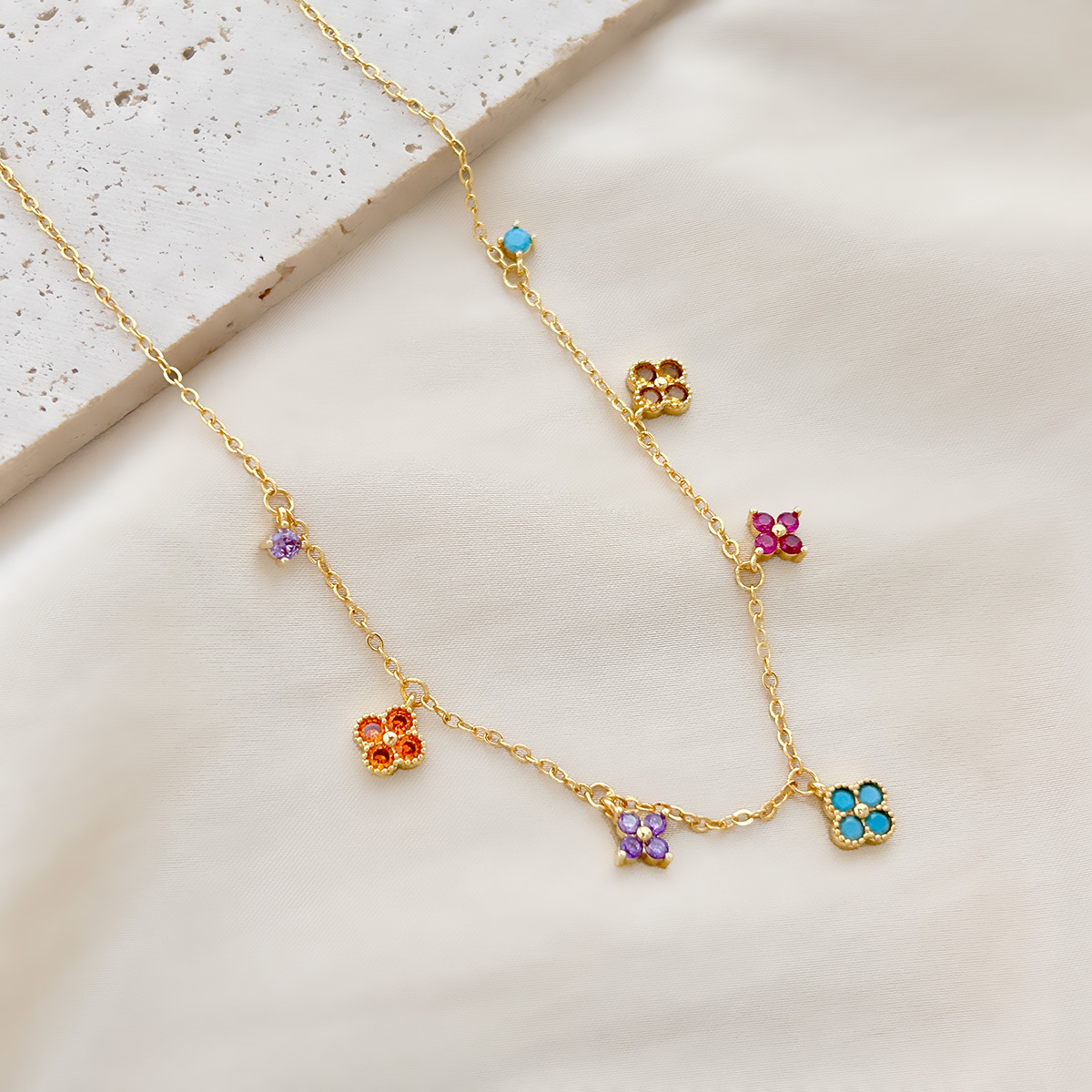 2025新款花朵锁骨链网红多巴胺小清新彩色锆石气质百搭高级感配饰