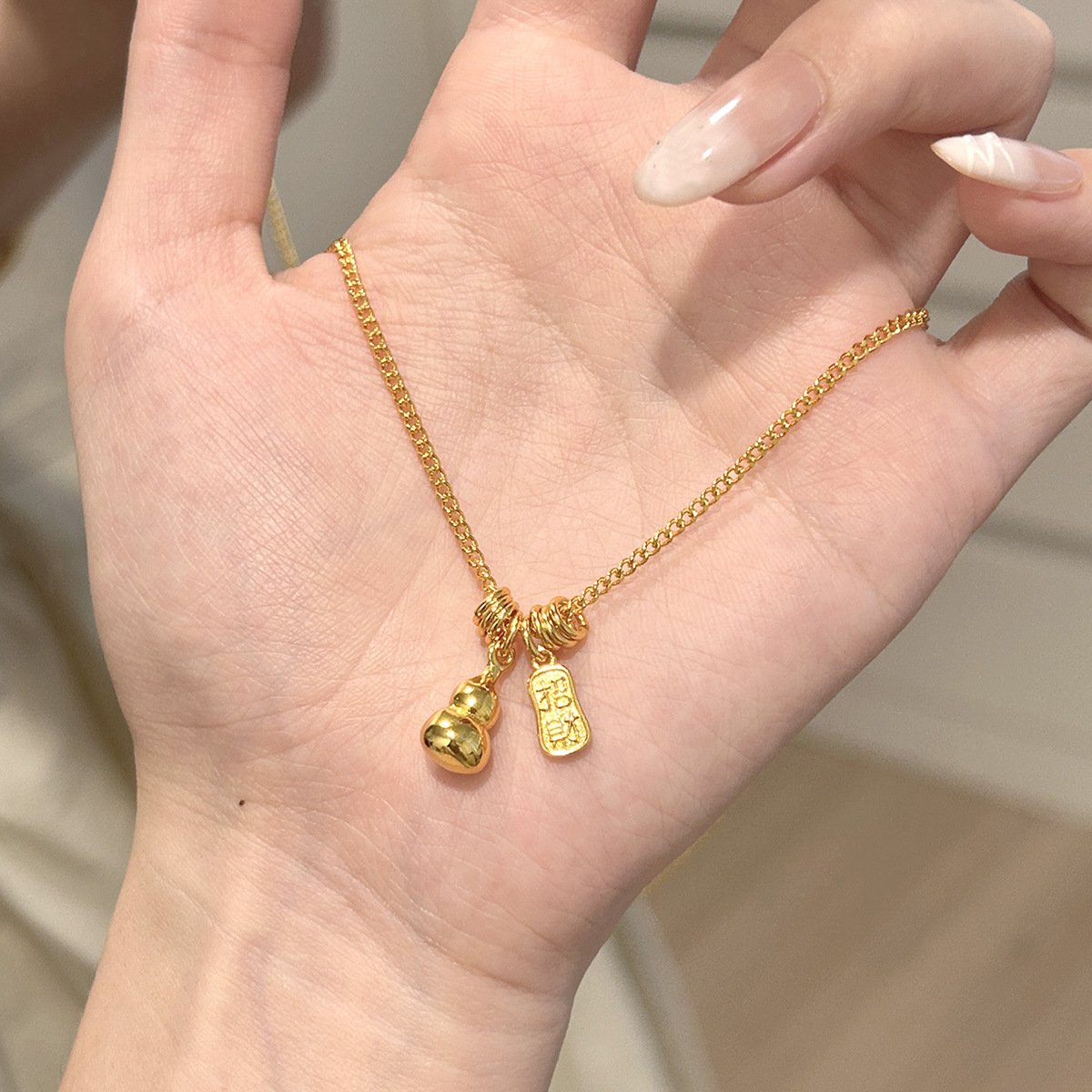 女性向けの人気の新しい中国風の平和と富のひょうたんネックレス、シンプルな気質、ハイエンド、国民的トレンド、レトロで多用途な鎖骨チェーン