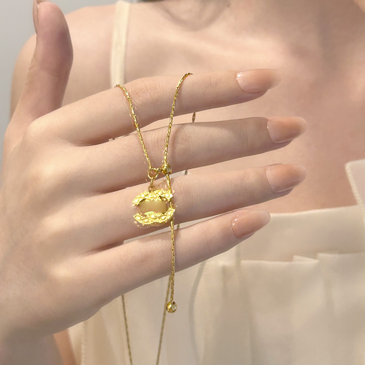 フレンチレトロな質感の女性用スモールフレグランスネックレス、チタン鋼、軽い高級感、ニッチなデザイン、ハイエンドで多用途な鎖骨チェーン