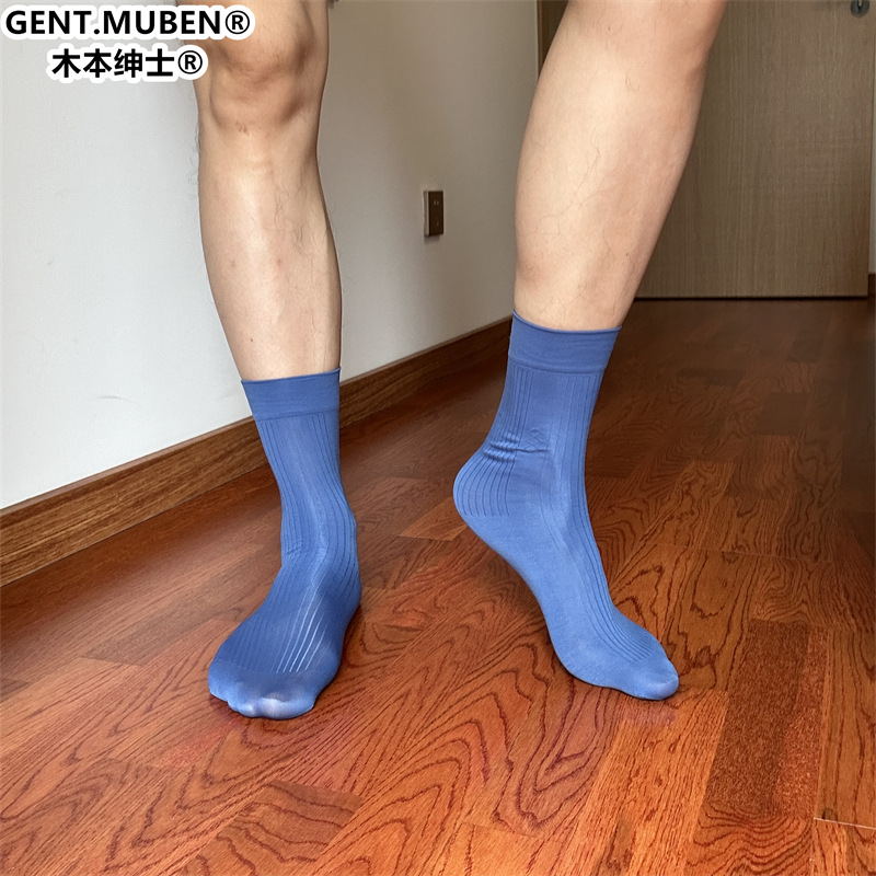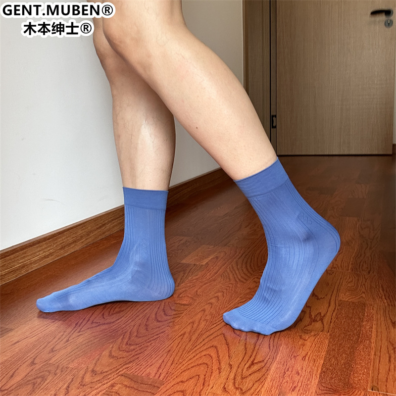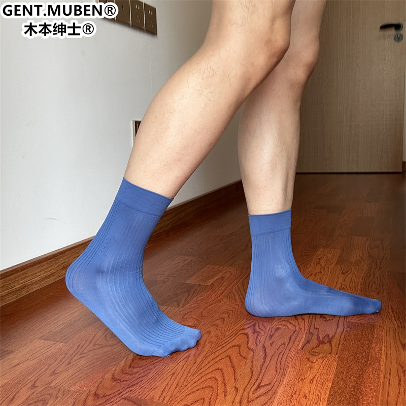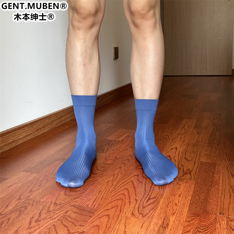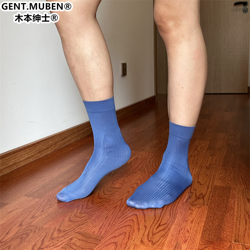 Gentmubenワイドストライプ宝青男性ビジネス正装ストッキング中長筒日系ナイロンスーツストッキング