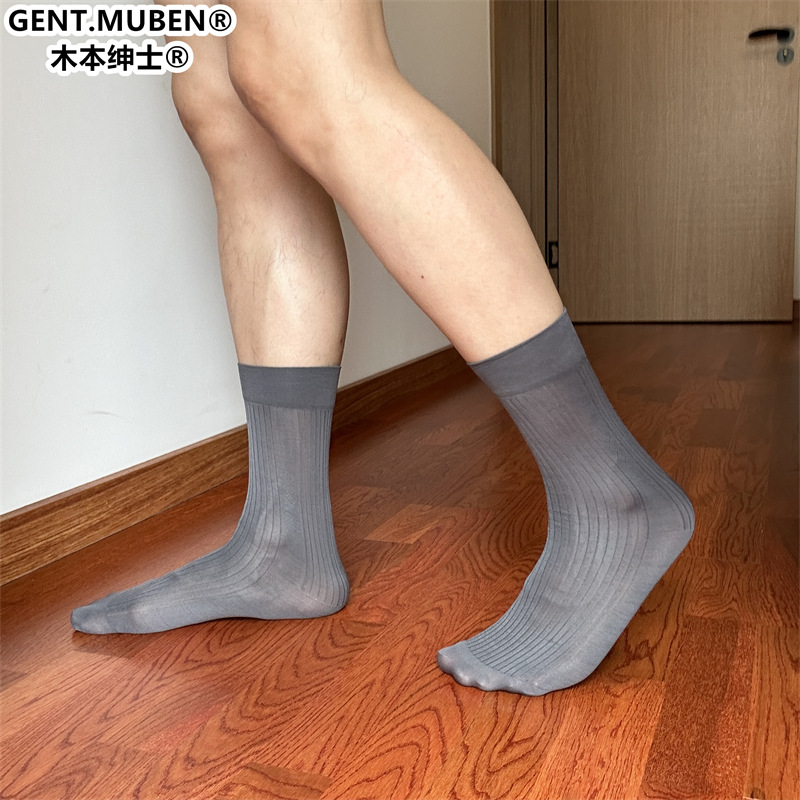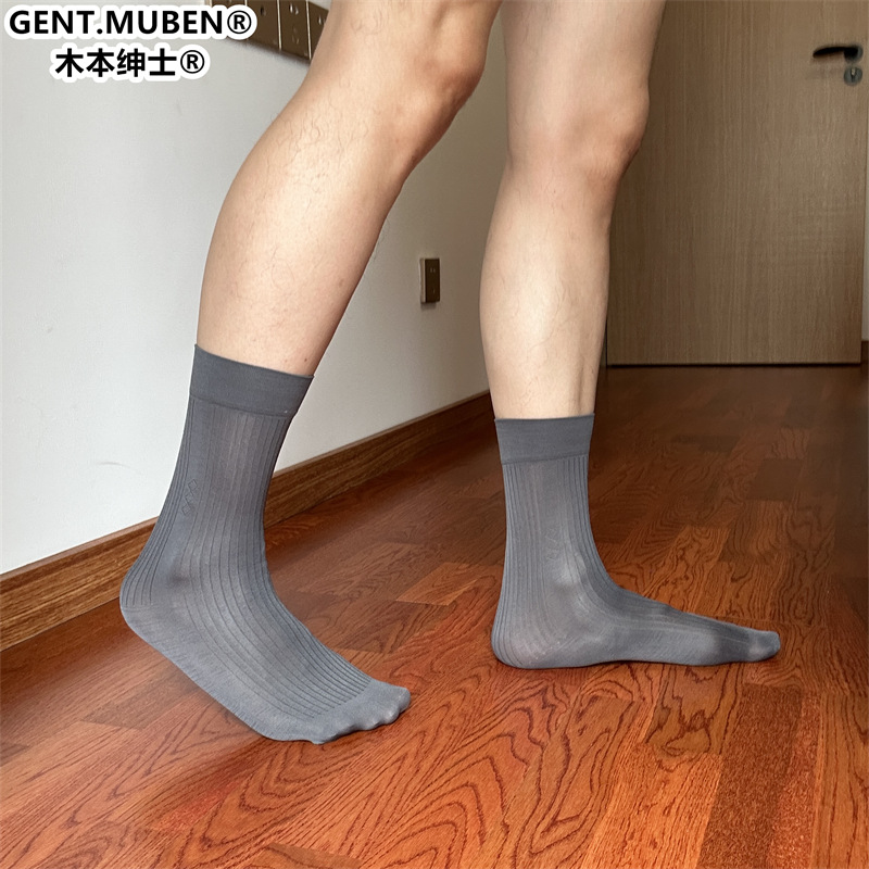 つま先補強素顔超薄透メンズビジネススーツ中長筒日系ナイロン正装ふくらはぎストッキングb03