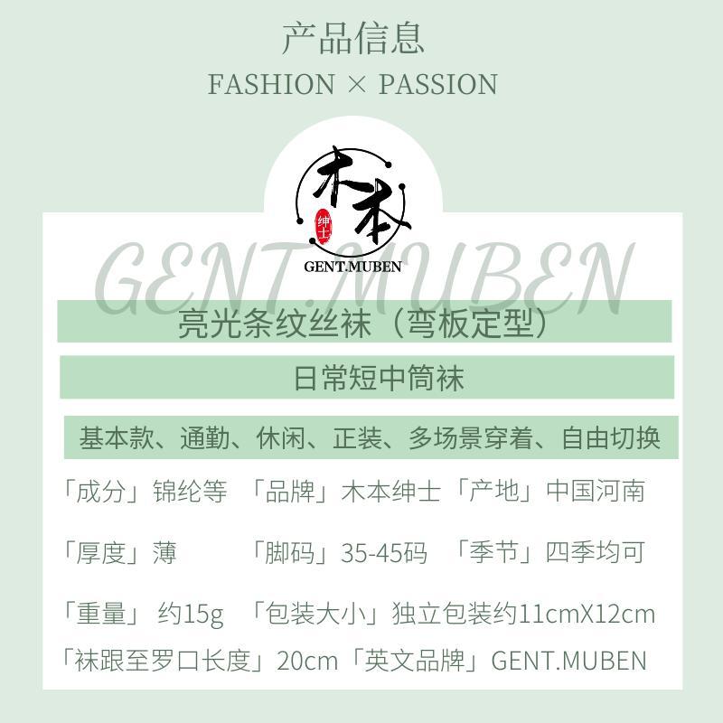 木本绅士新款弯跟锦纶亮光丝滑男士商务休闲正装微透条纹中筒丝袜