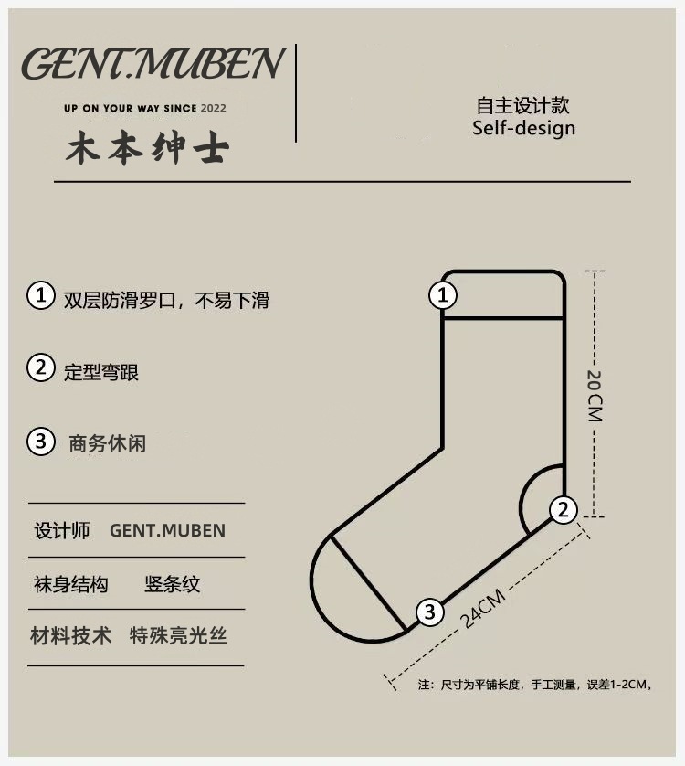 Muben Gentleman 6897 メンズ ビジネス ワイド バイアスストライプ カジュアル デイリー シンプル 多用途 快適 ショートチューブ シルケットコットン ソックス