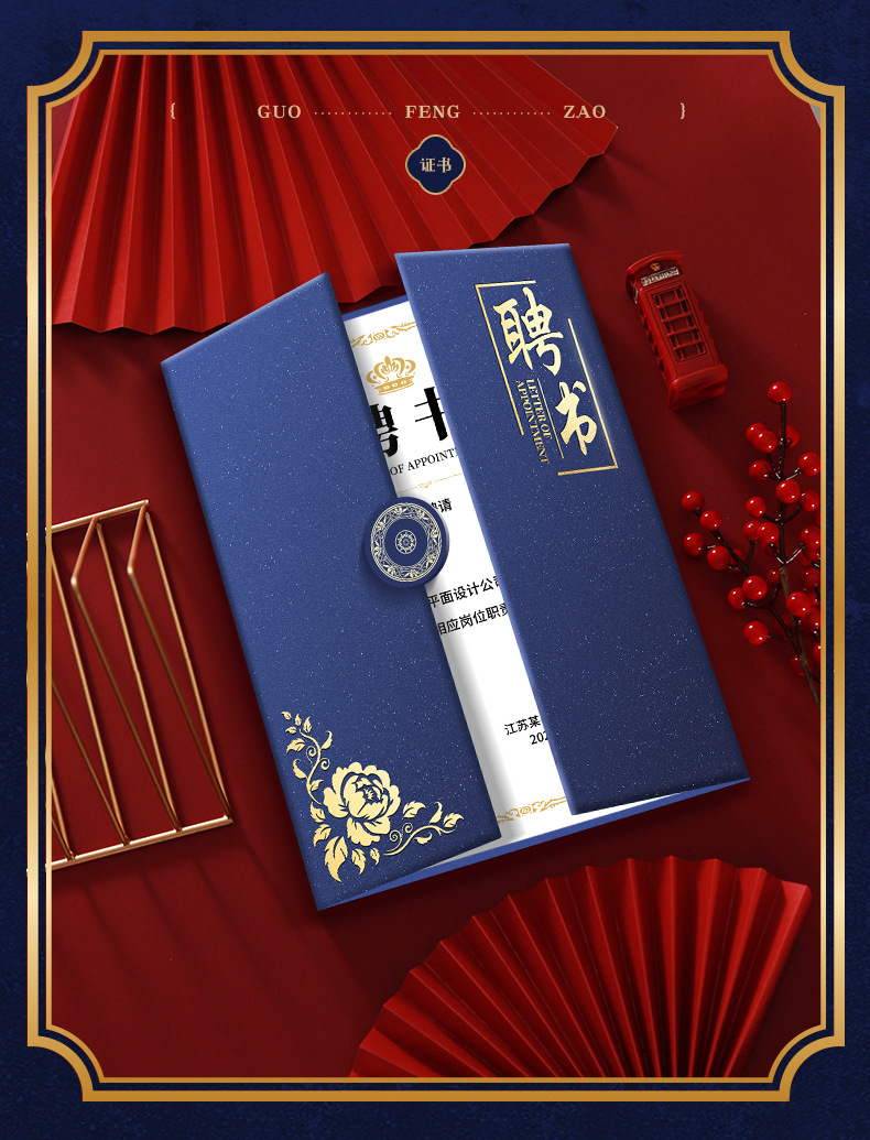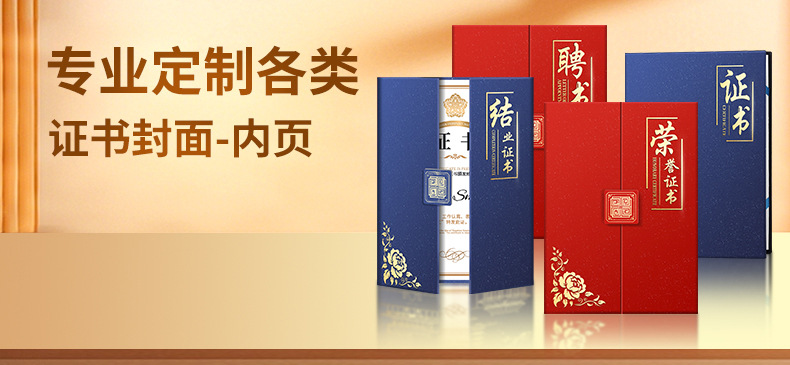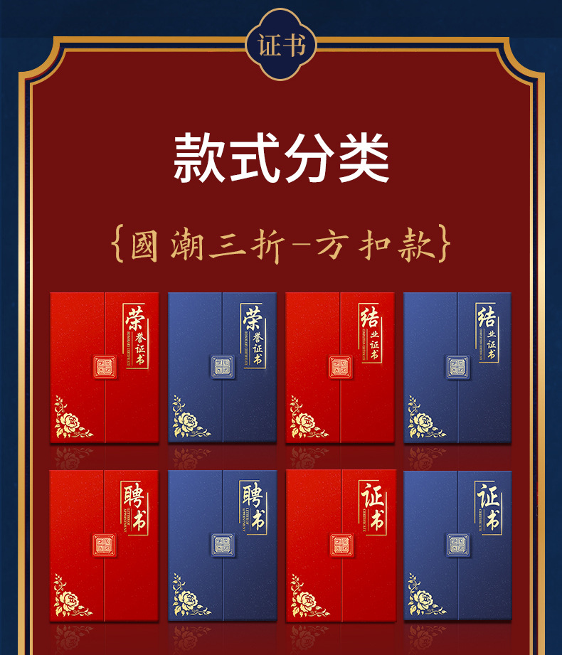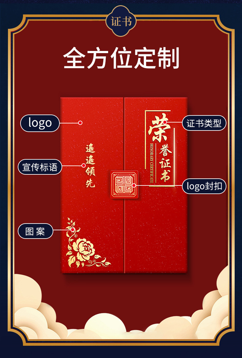 荣誉证书定制聘书结业证书外壳封皮制作三折珠光国潮花纹员工颁奖