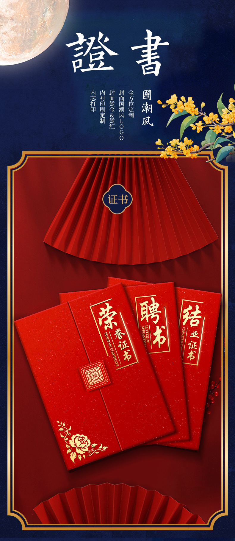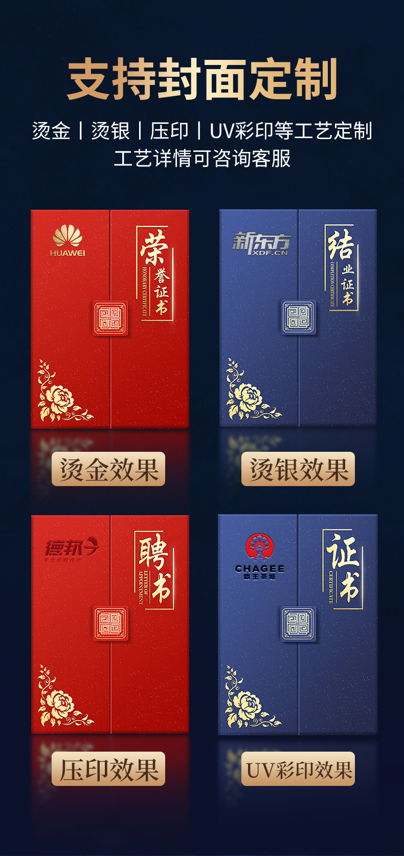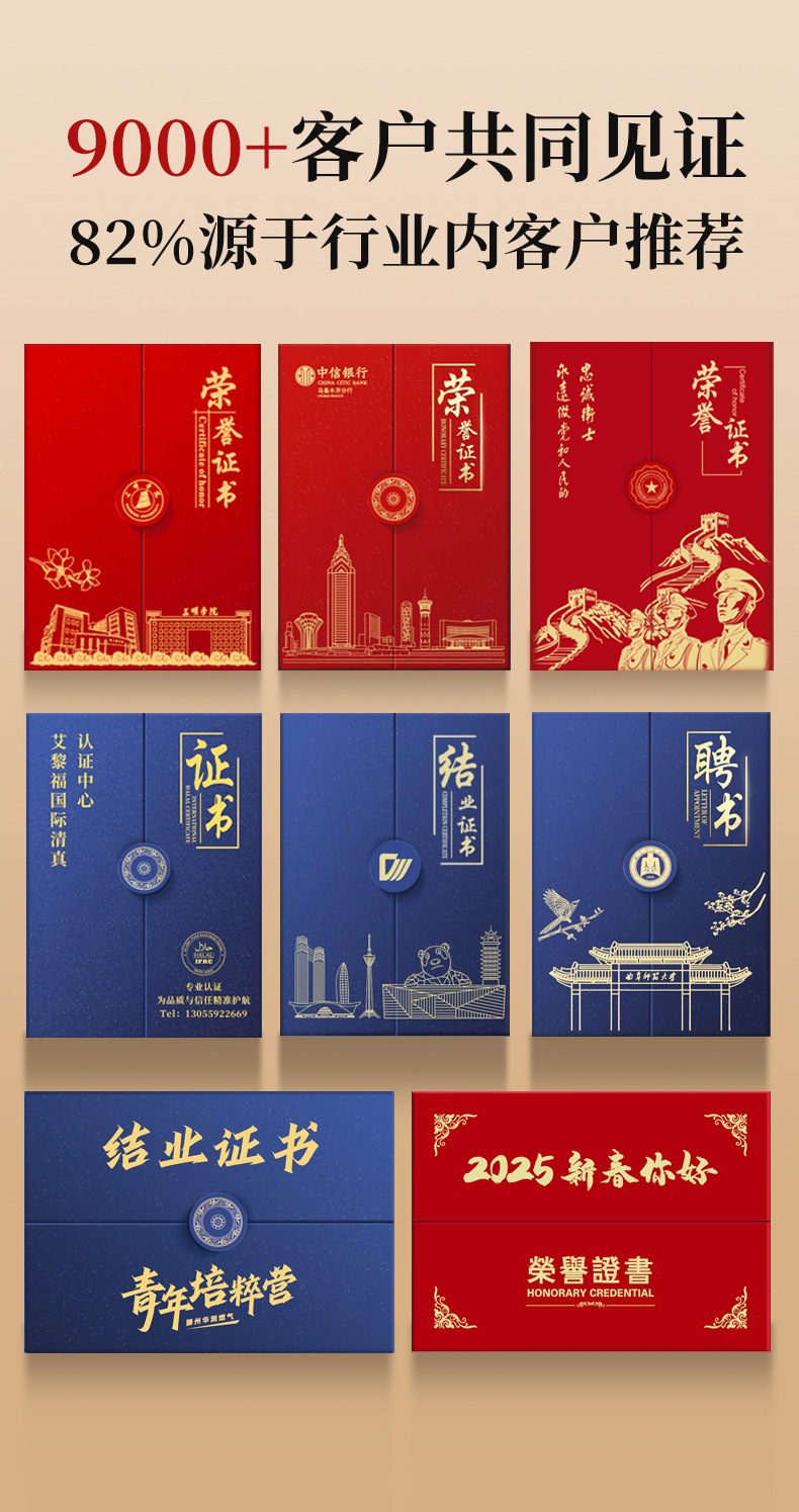 荣誉证书定制聘书结业证书外壳封皮制作三折珠光国潮花纹员工颁奖