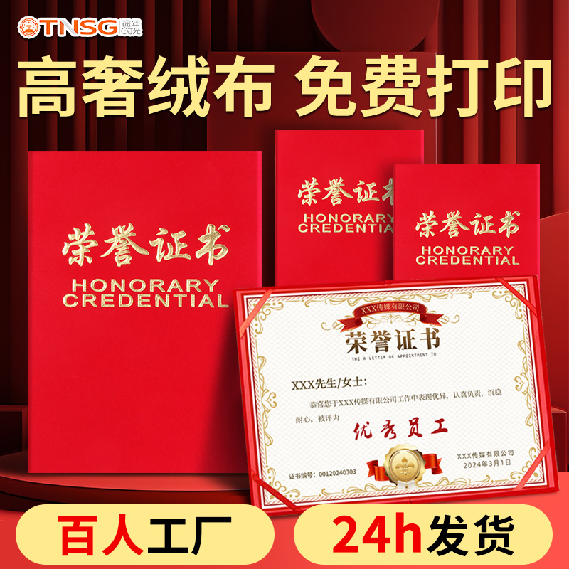 優秀な従業員を表彰・賞賛するA4中ページカスタマイズカバー・カバーシェルカスタマイズハイエンド名誉証明書