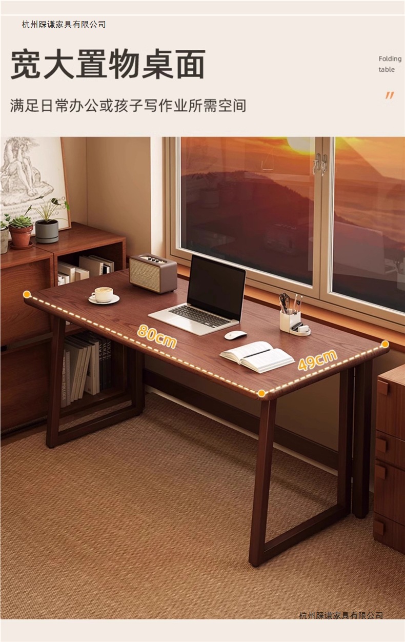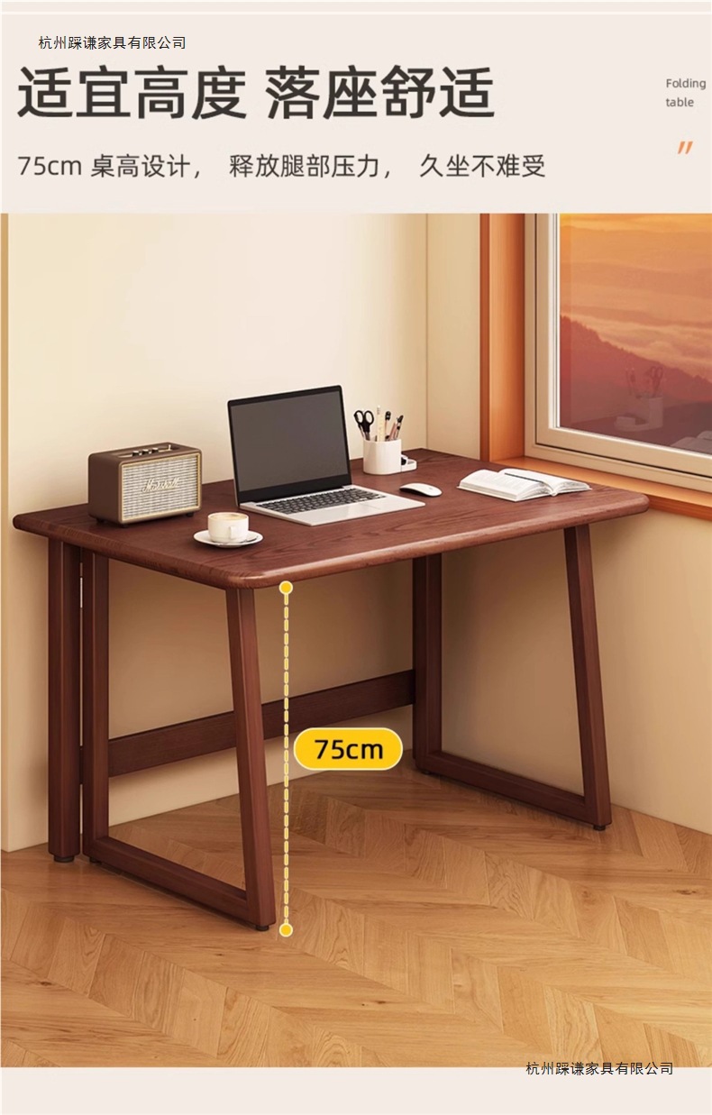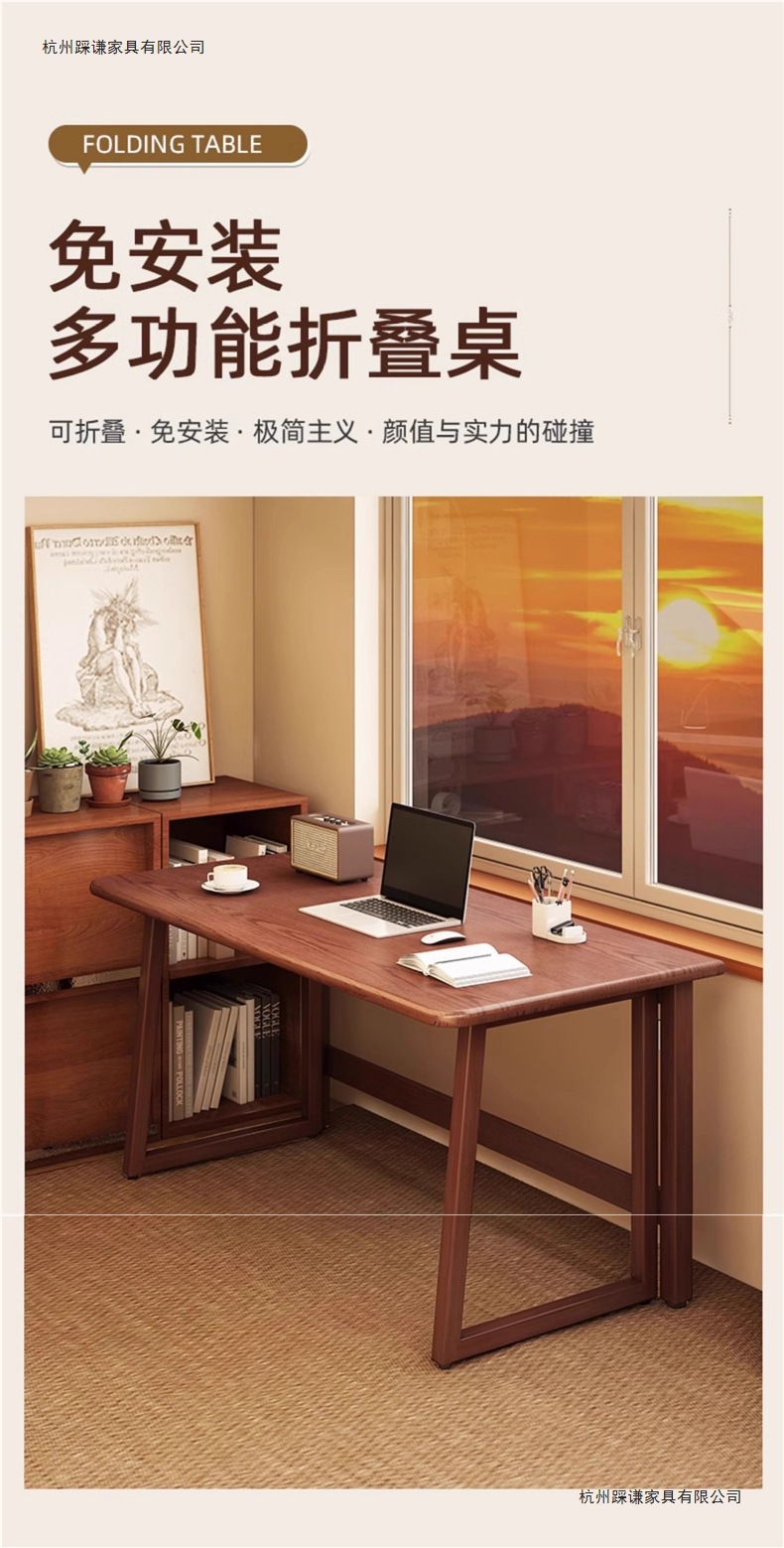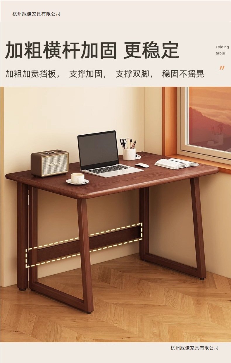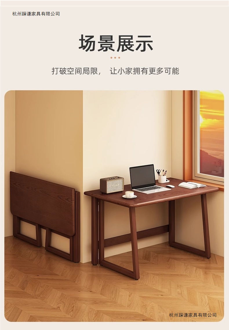小户型折叠书桌一体靠墙中式复古风长方桌出租房新型折叠桌电脑桌