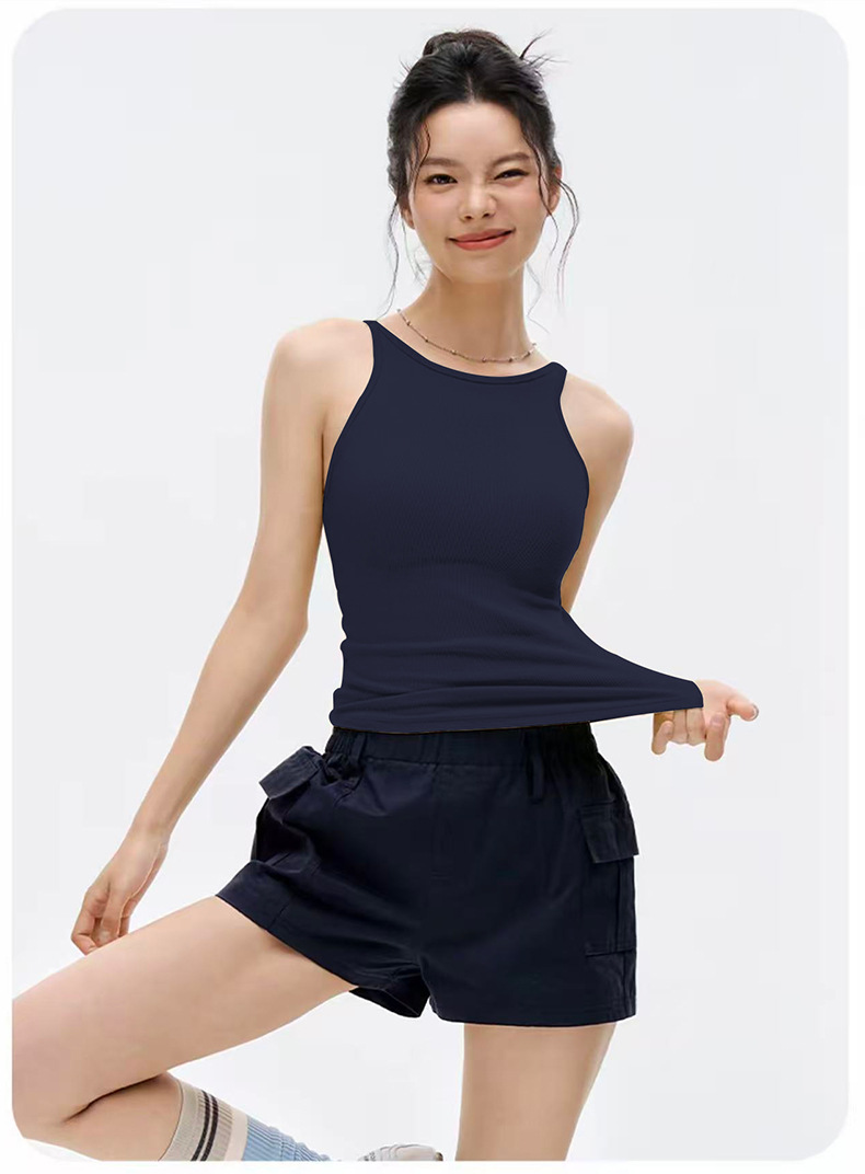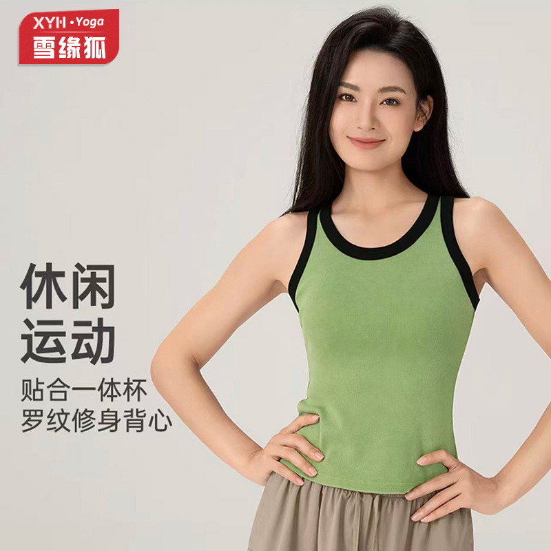 撞色螺纹一体杯瑜伽服背心女收腹显瘦外穿跑步透气普拉提健身背心