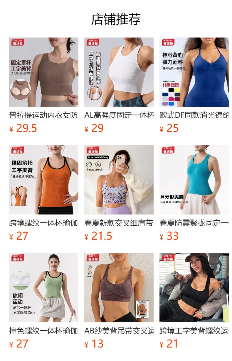 工字背心女固定胸垫运动跑步瑜伽服套装普拉提训练健身衣外穿