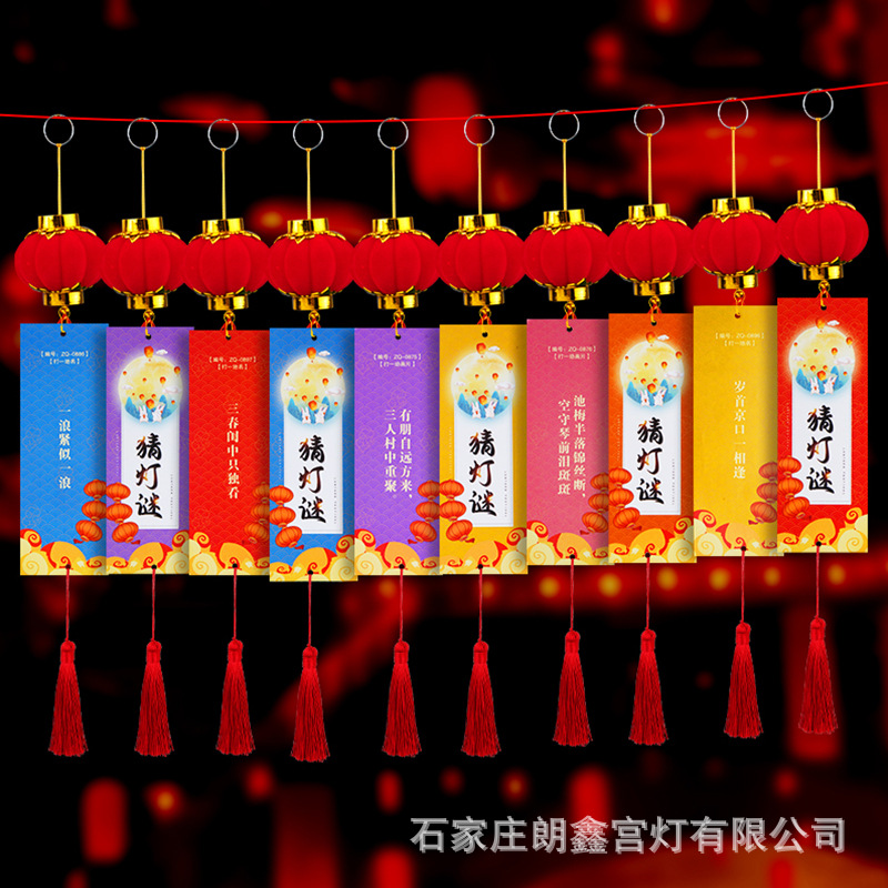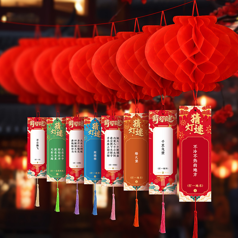 春节元旦猜灯谜灯笼卡片传统喜庆游戏流苏字谜语空白挂牌场景布置