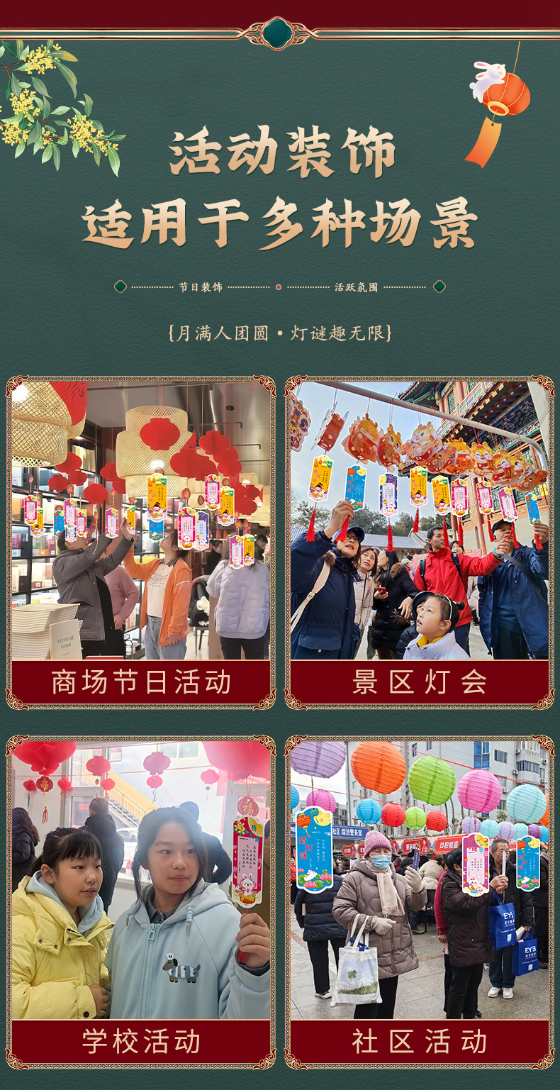 元宵節の灯籠の文字謎活動、文字謎、提灯、ショッピングモールの遊園会、お祭り活動、吊り下げカード、新年飾り