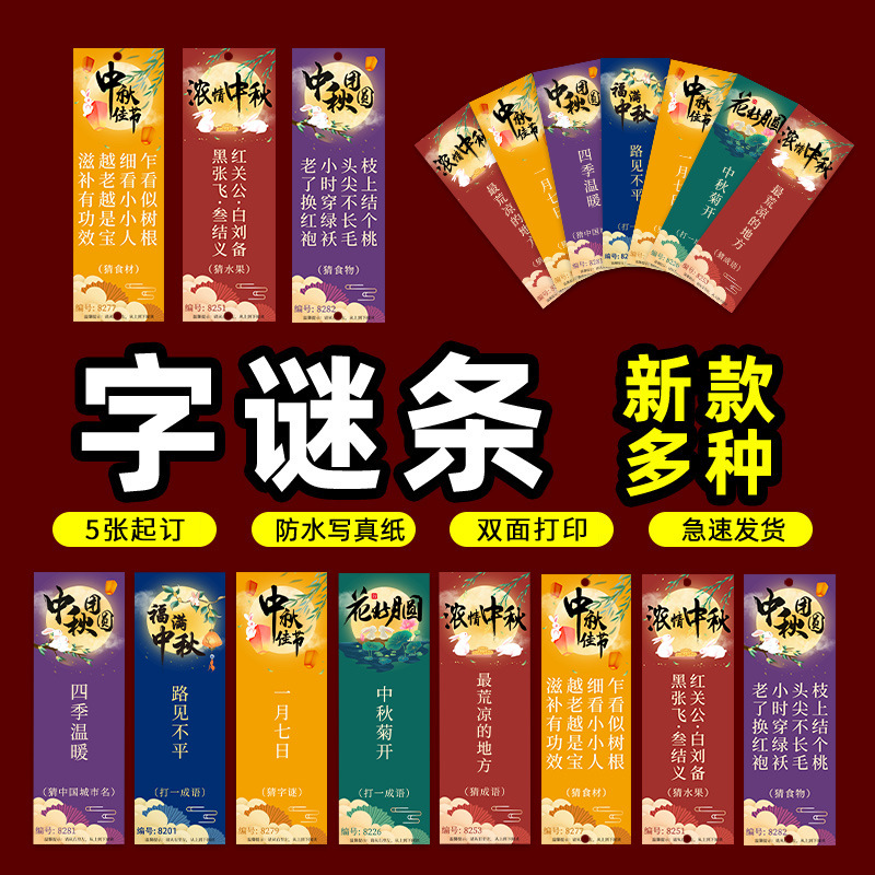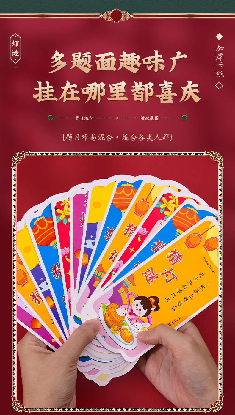 新款猜灯谜卡片中秋节国庆装饰纸灯笼灯谜条挂牌游园猜字谜语吊卡
