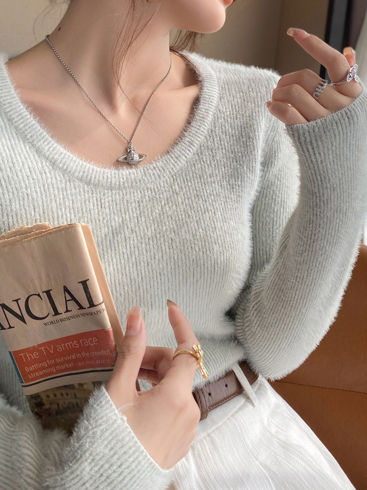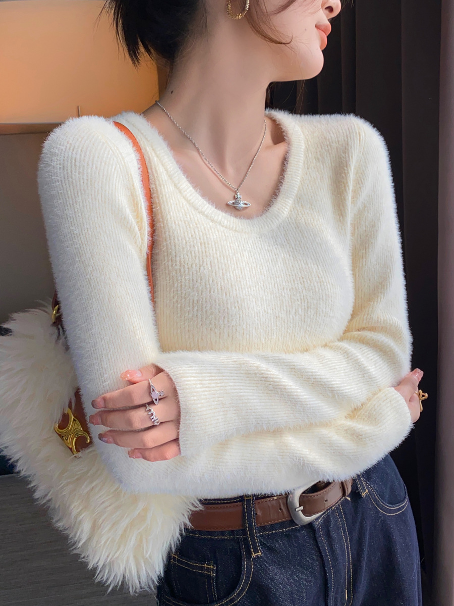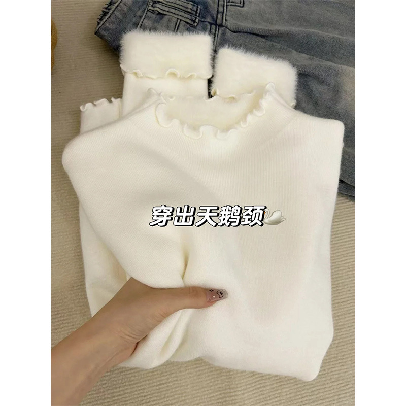 一体绒面料 加绒加厚圆领毛衣女秋冬季保暖2025新款白色打底上衣