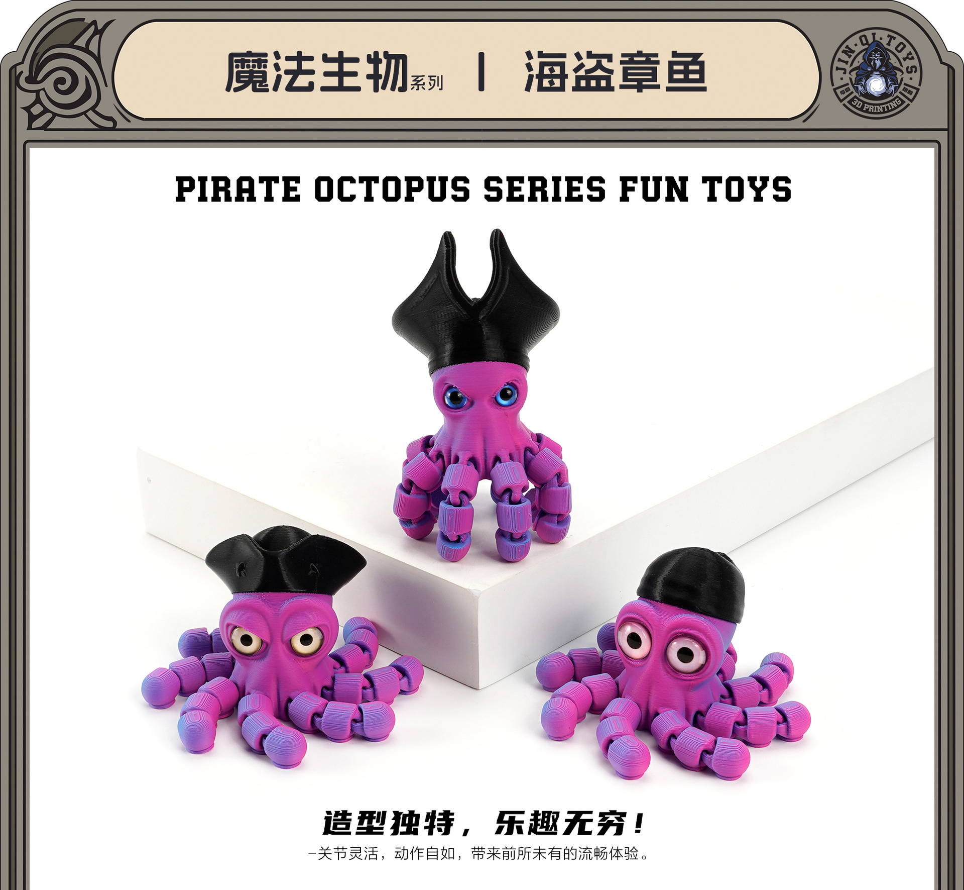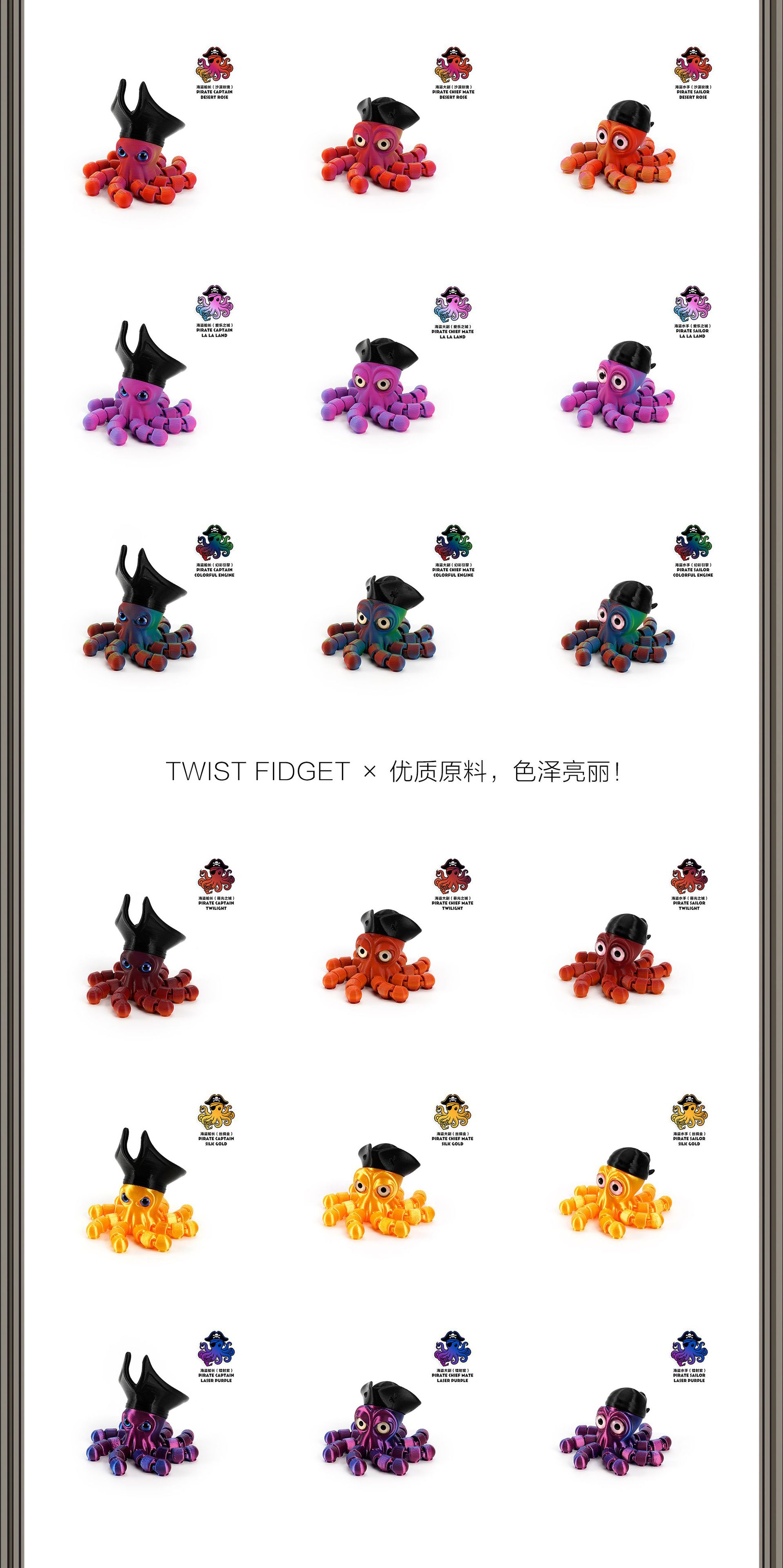 3D打印跨境热销爆款海盗章鱼可活动一体关节桌面玩具摆件节日礼品