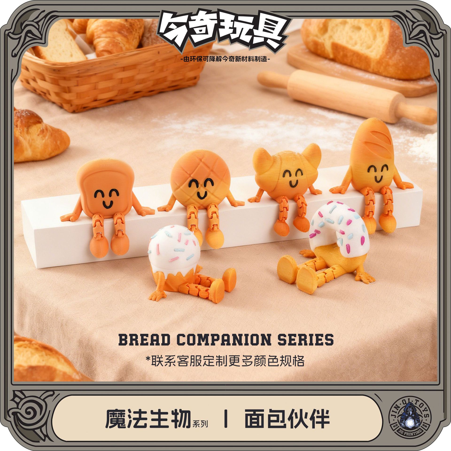 3D打印跨境爆款面包伙伴坐姿小人甜品可爱桌面创意礼品摆件