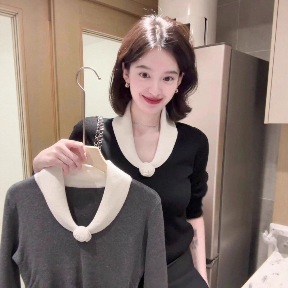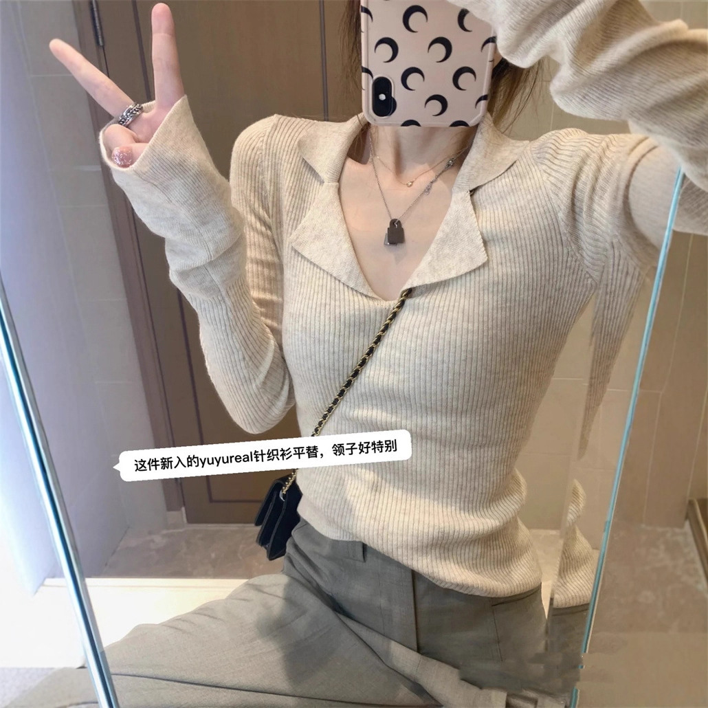 法式气质小众POLO针织衫打底衫毛衣女秋季修身显瘦内搭上衣