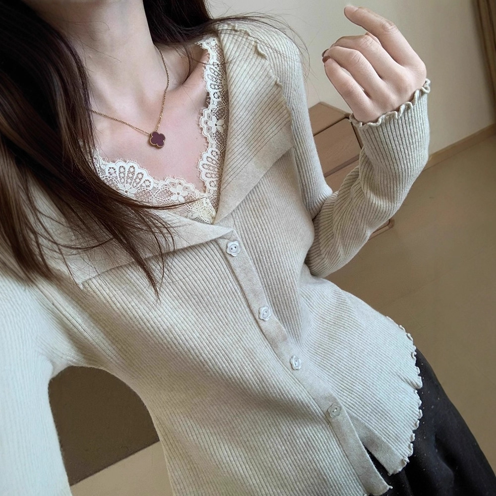 法式蕾丝假两件打底衫2025秋季新款气质休闲甜美上衣女