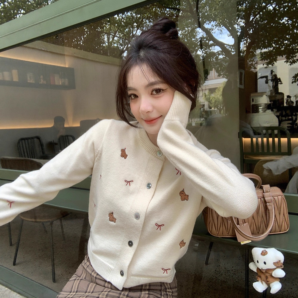 温柔蝴蝶结刺绣甜美毛衣针织开衫外套女设计感百搭短款上衣秋冬季