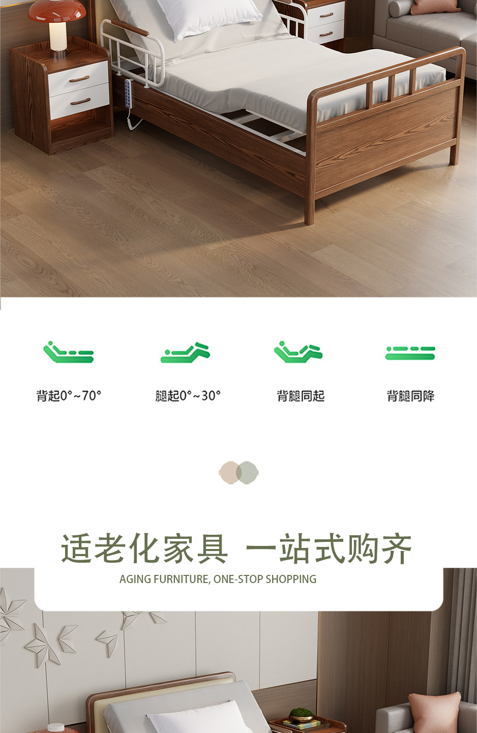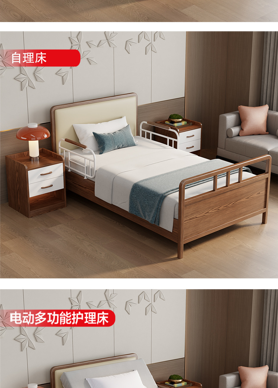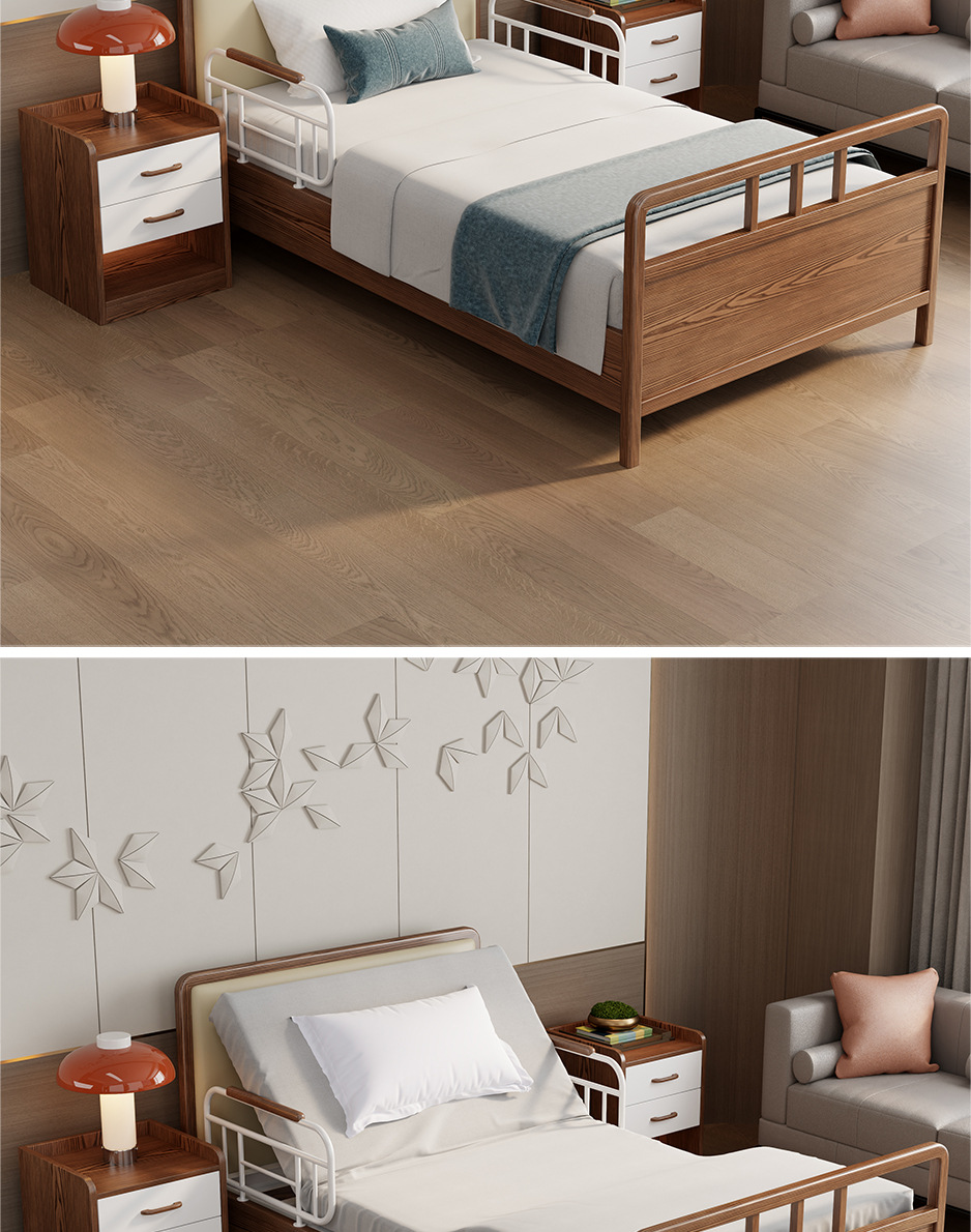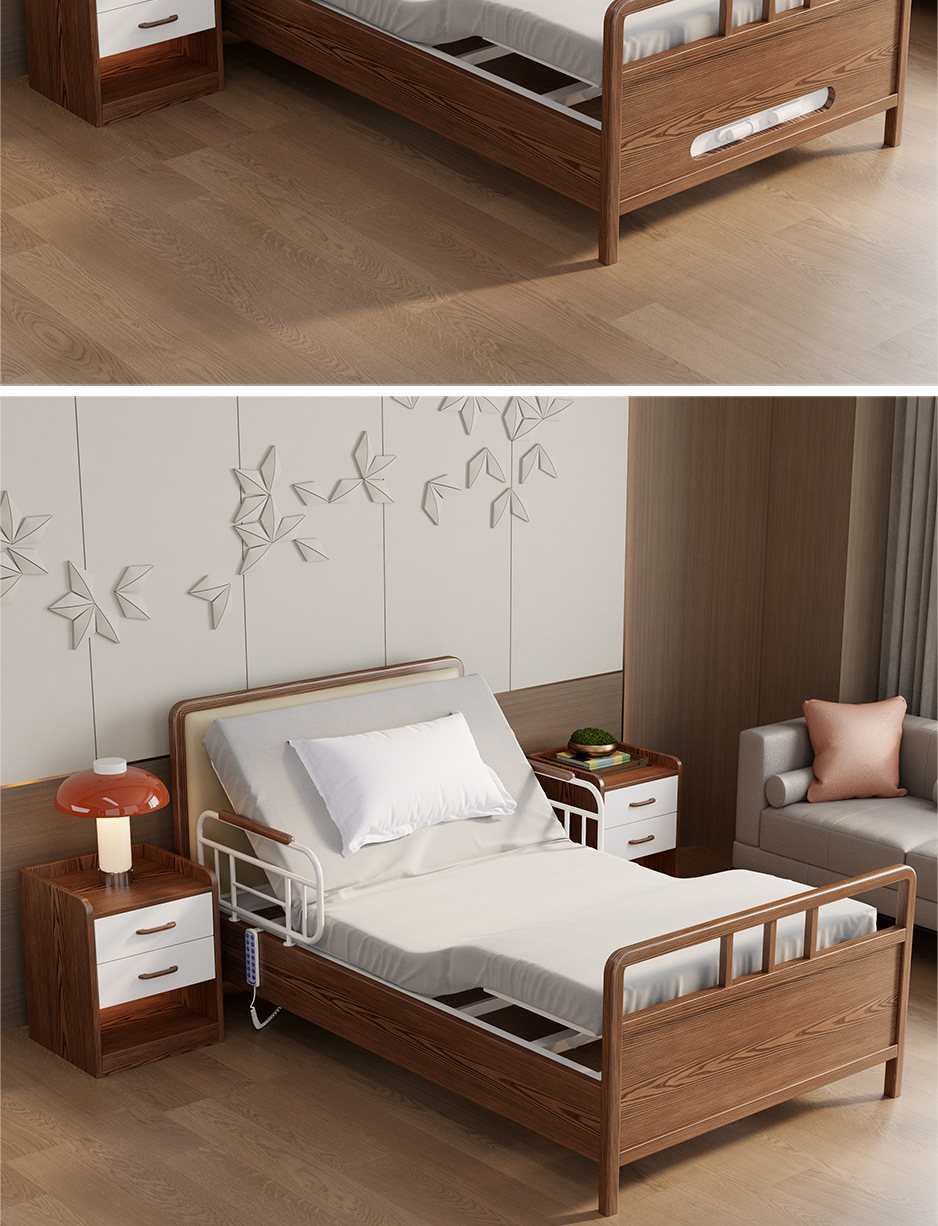 护理院敬老院床电动胡桃色实木多功能养老院床适老化康养中心家具