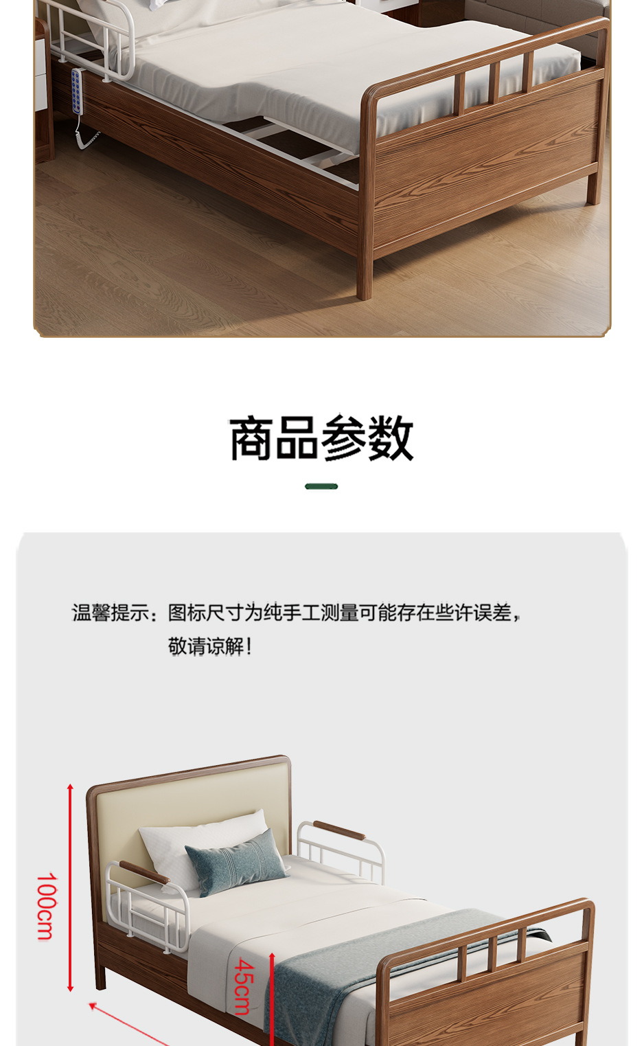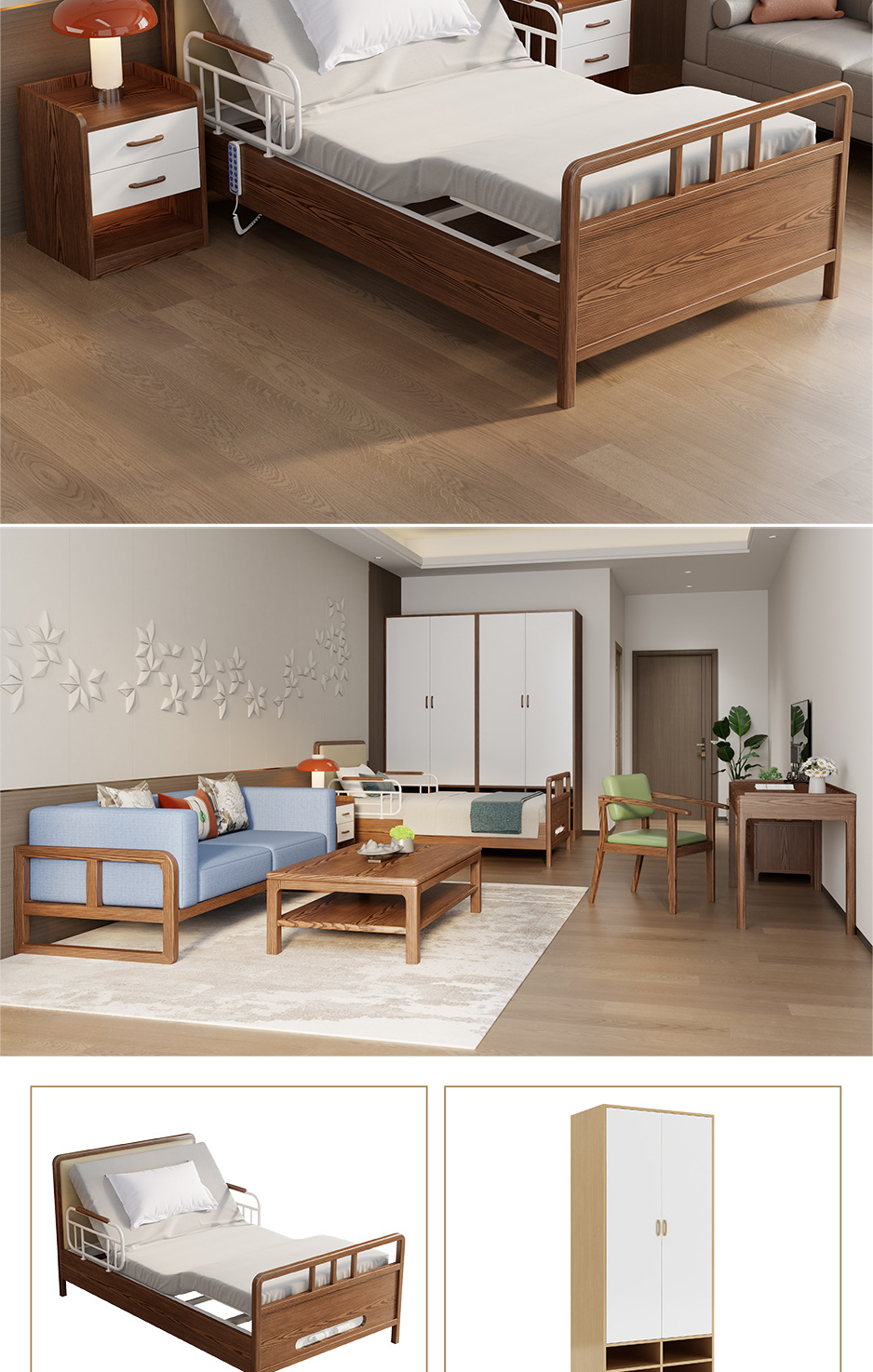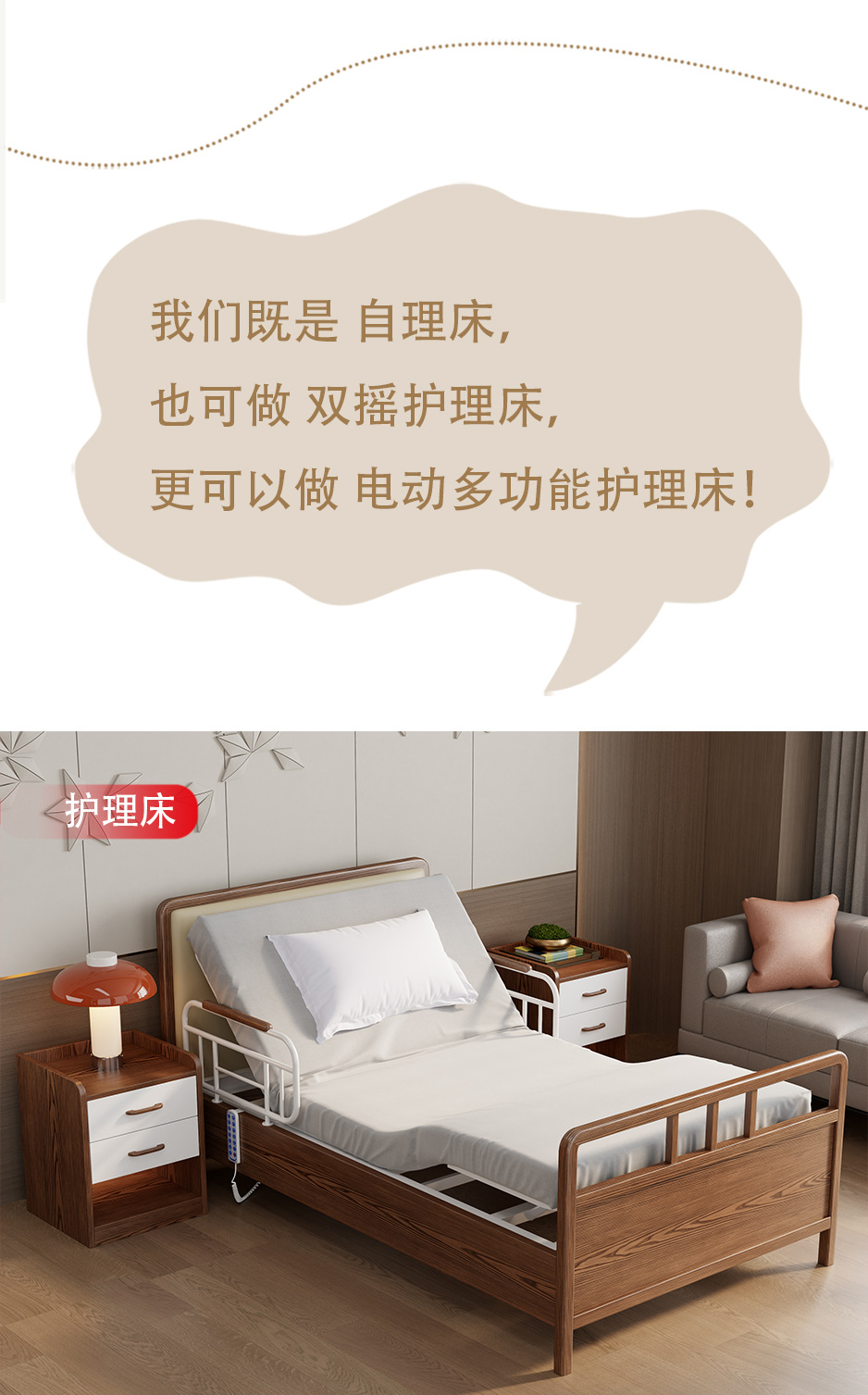 护理院敬老院床电动胡桃色实木多功能养老院床适老化康养中心家具