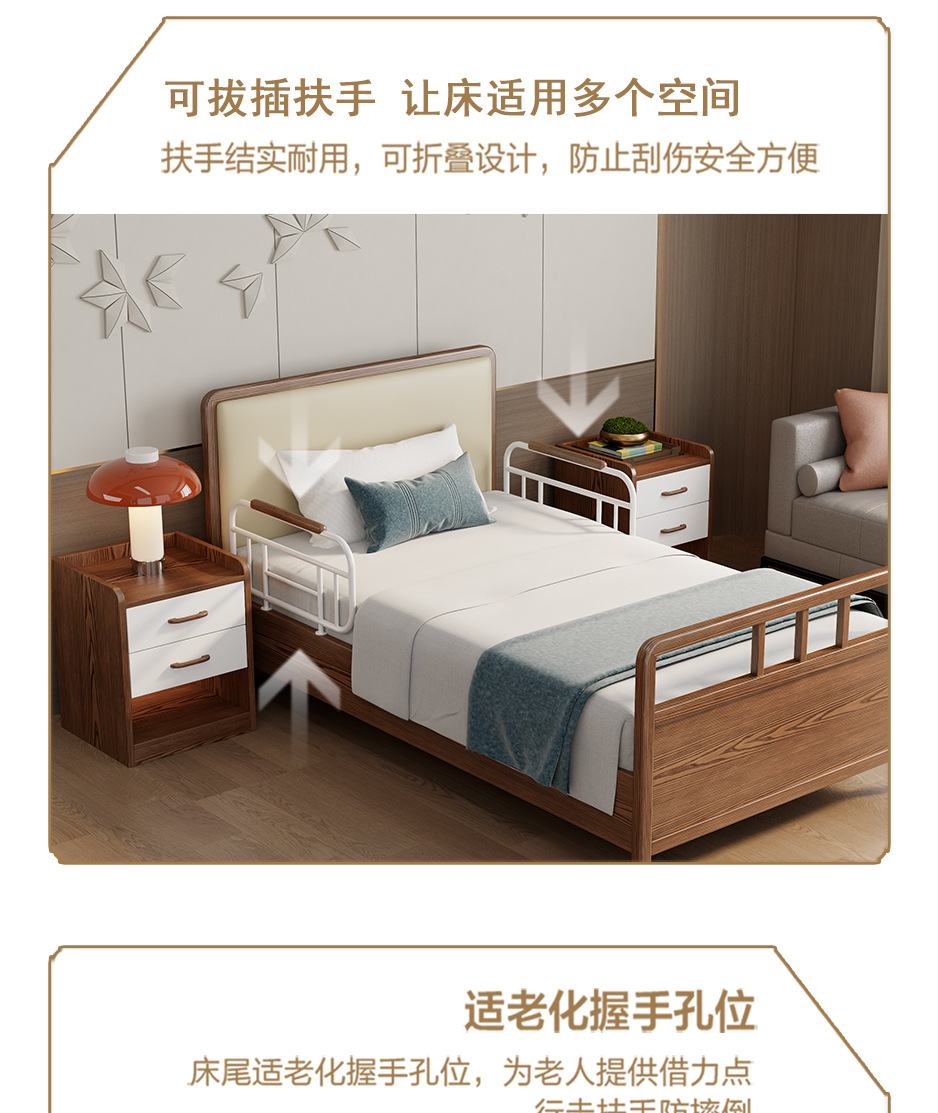 老人自理床家用实木可升降病床多功能老人床养老院护理床康养床