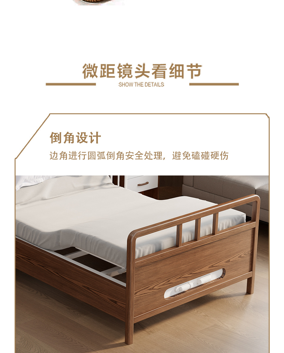 全实木1.2米老年人护理床家用带扶手床福利养老院专用适老单人床