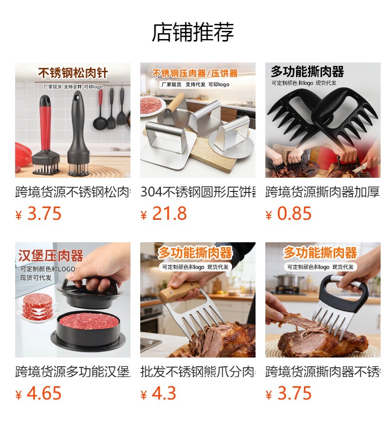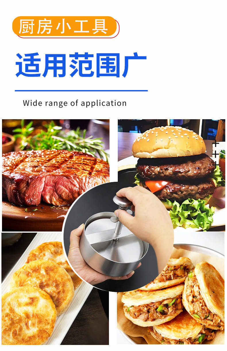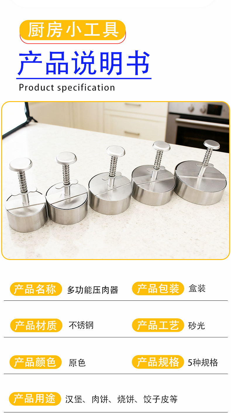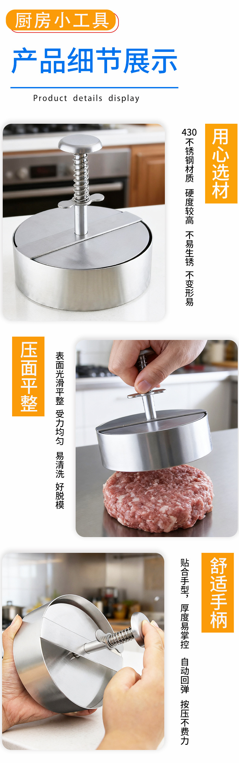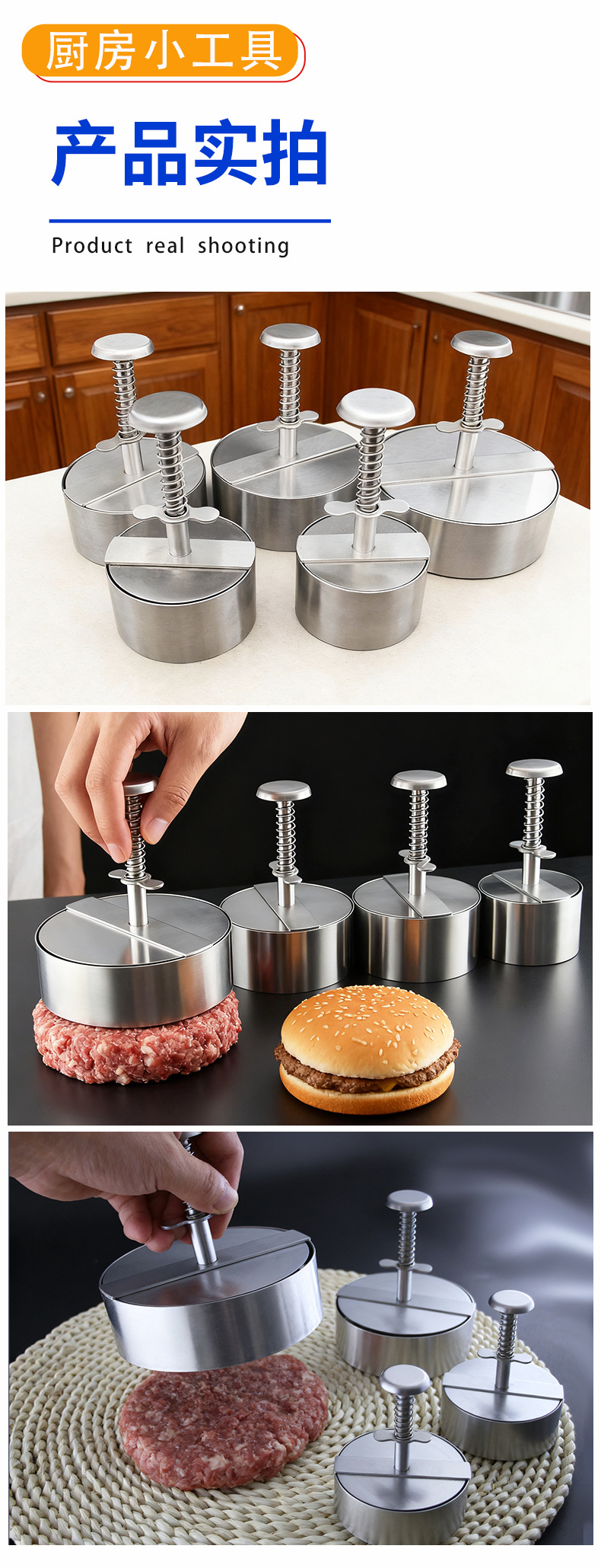 跨境货源按压式汉堡压肉器模具不锈钢加厚压饼器家用多功能压肉器