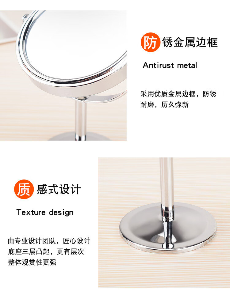 金属不锈钢双面台式桌面化妆镜办公室超高清放大立式梳妆镜化妆镜