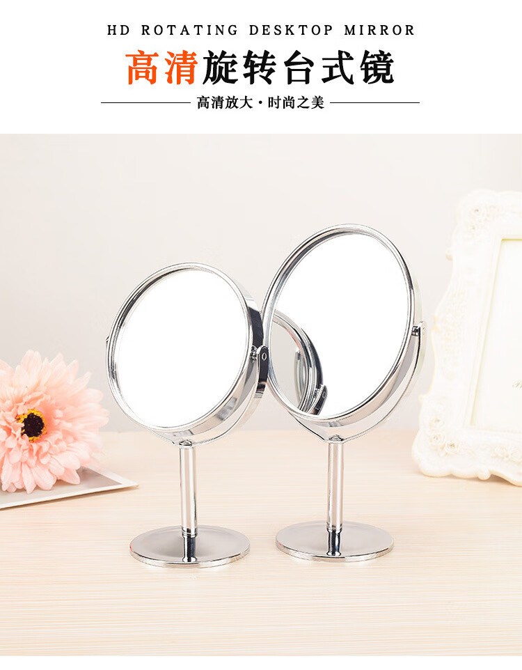 金属圆形双面旋转桌面镜可立宿舍台式小镜子化妆镜放桌子上