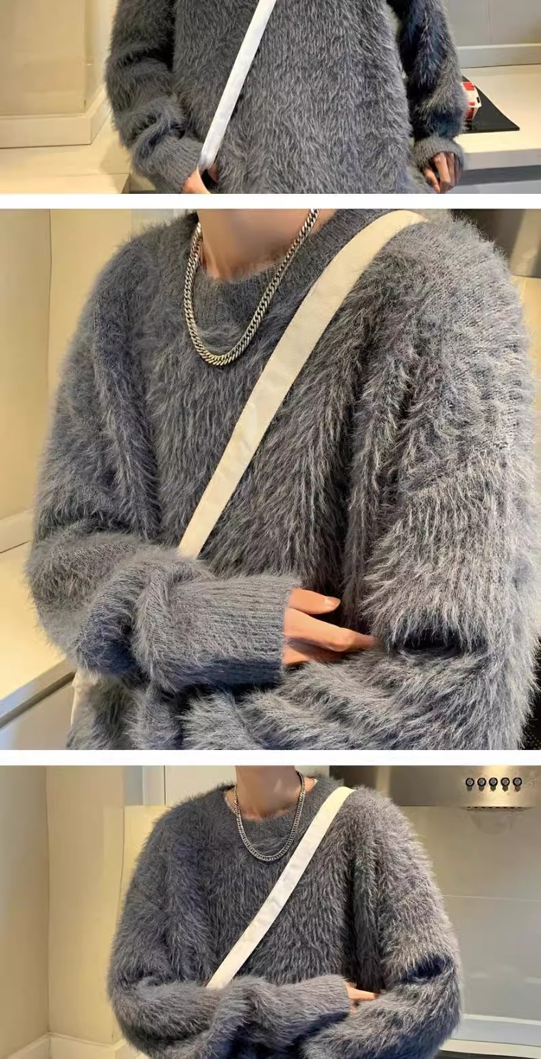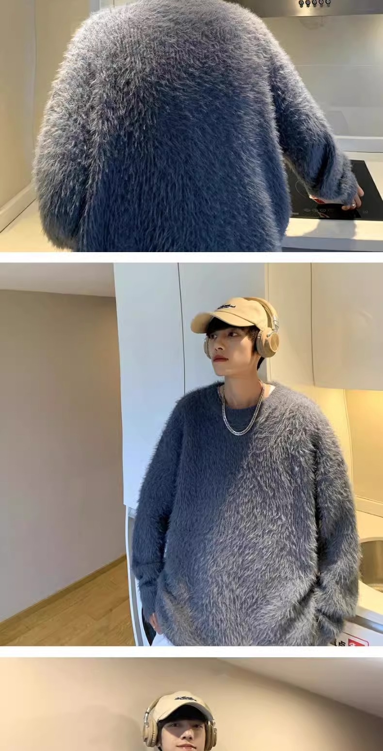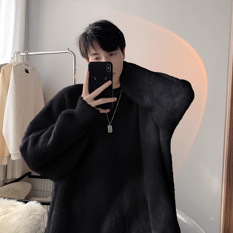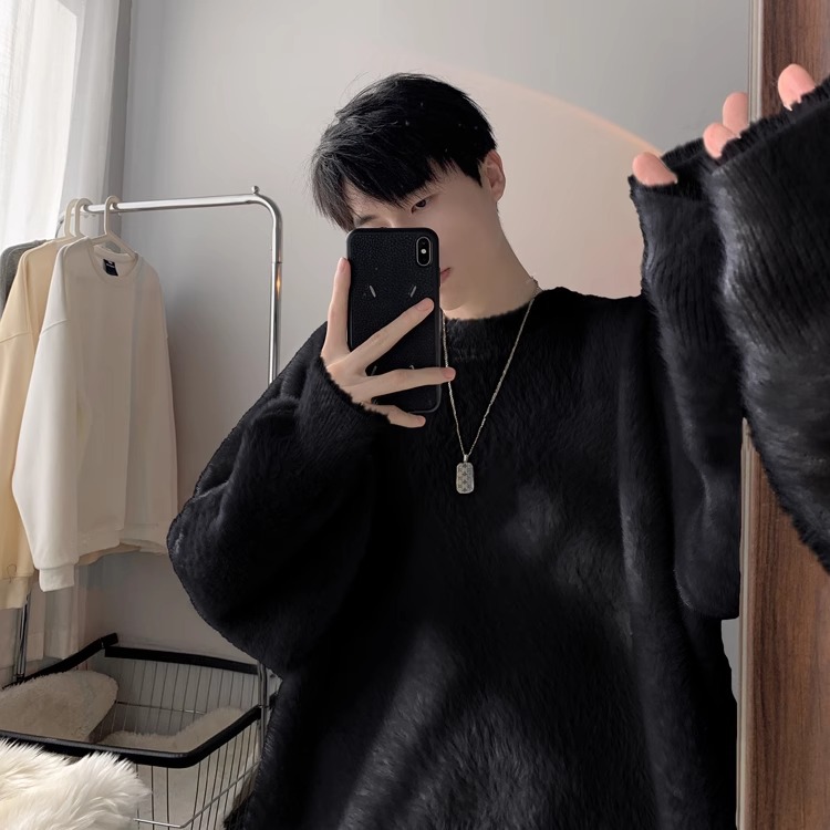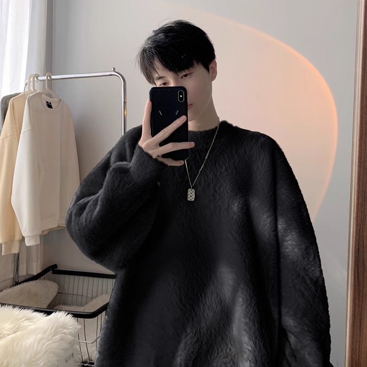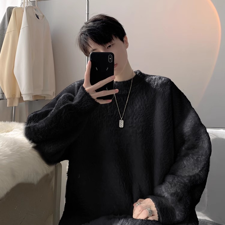 貂绒毛衣男秋冬季青少年慵懒风潮流宽松百搭休闲纯色针织衫