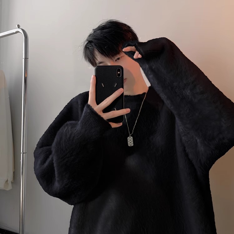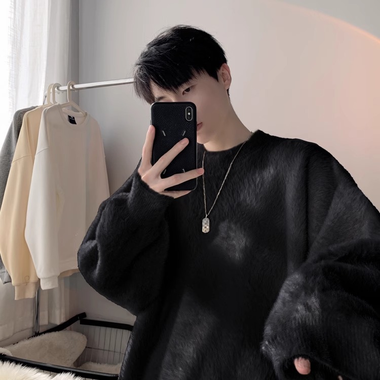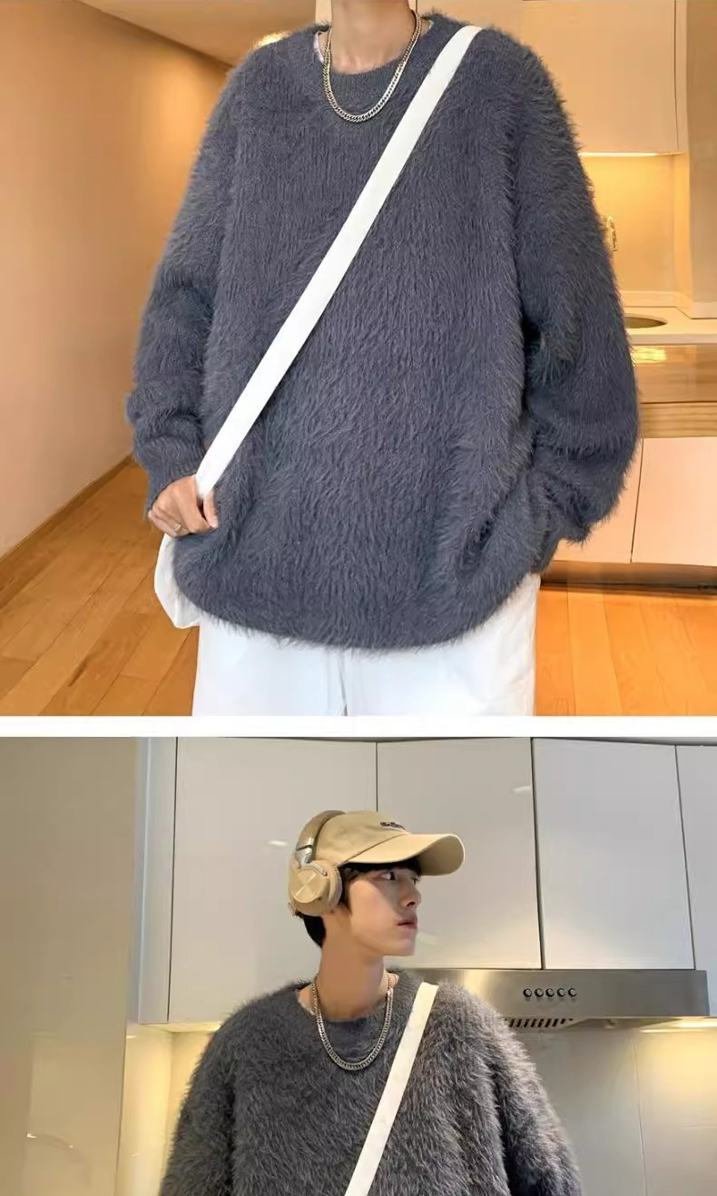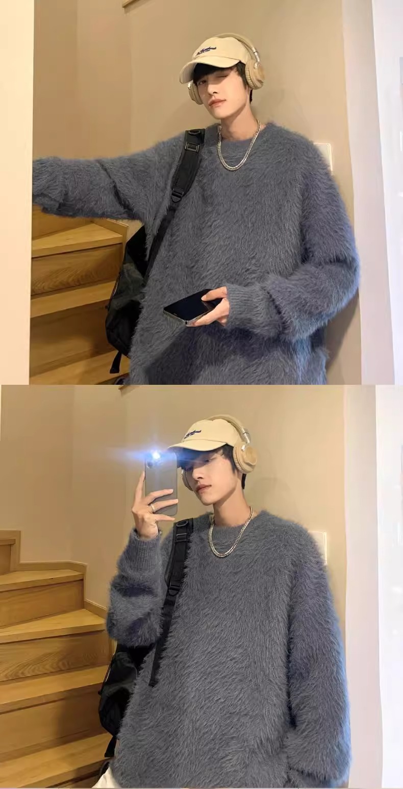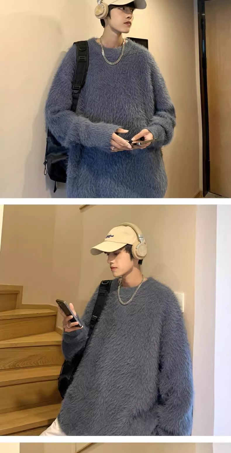貂绒毛衣男秋冬季青少年慵懒风潮流宽松百搭休闲纯色针织衫