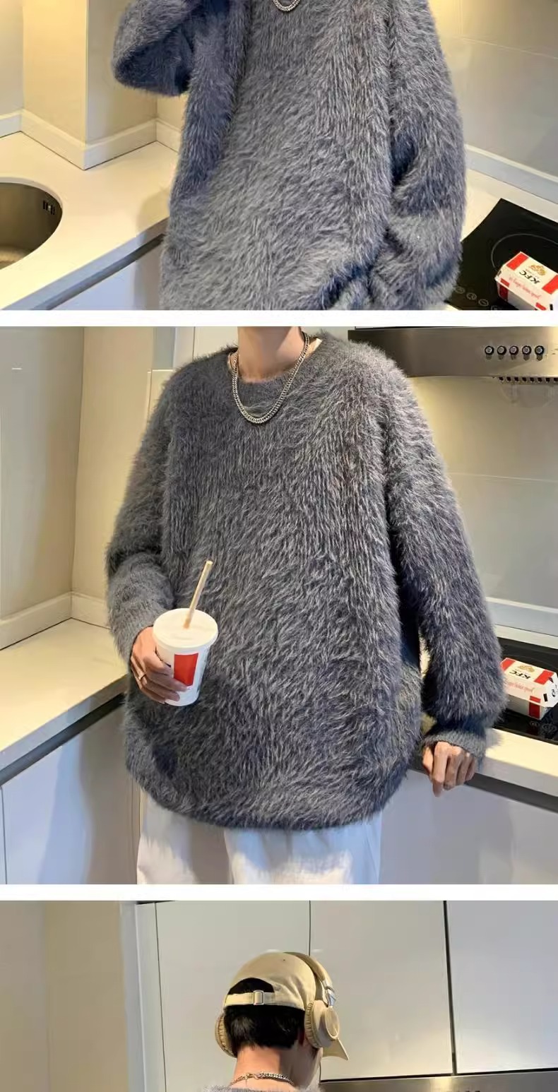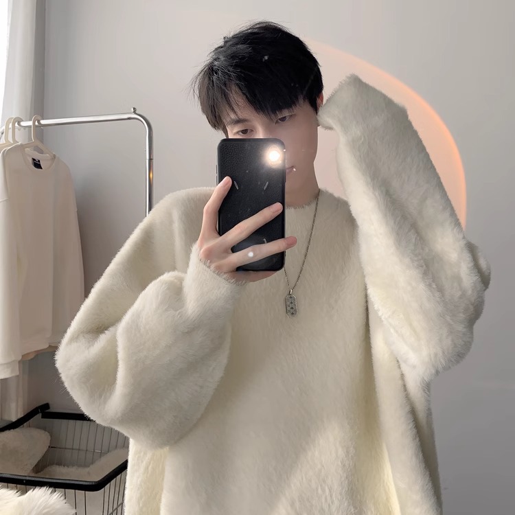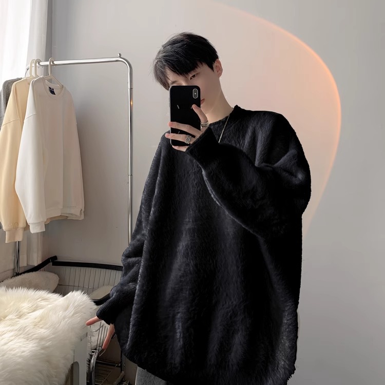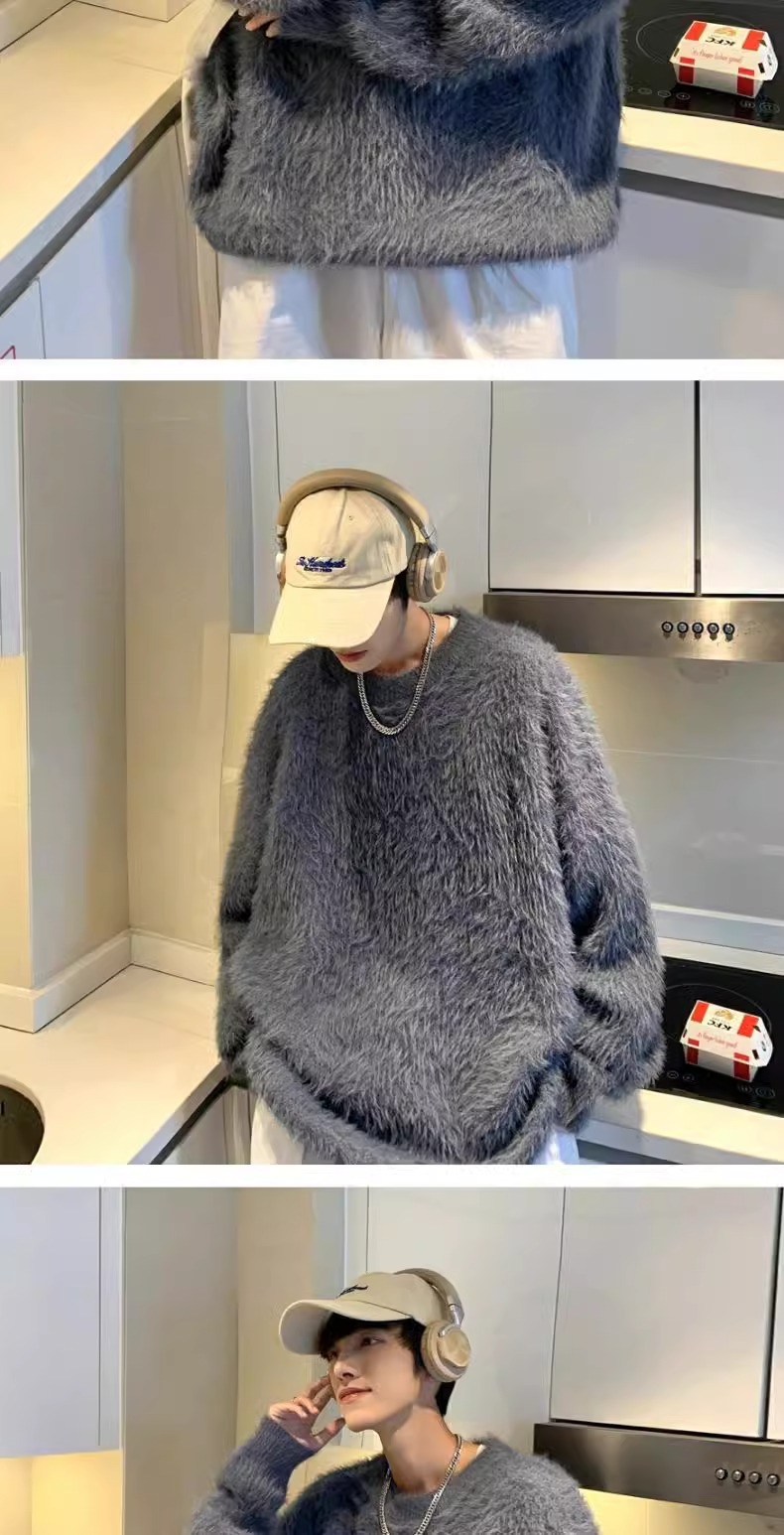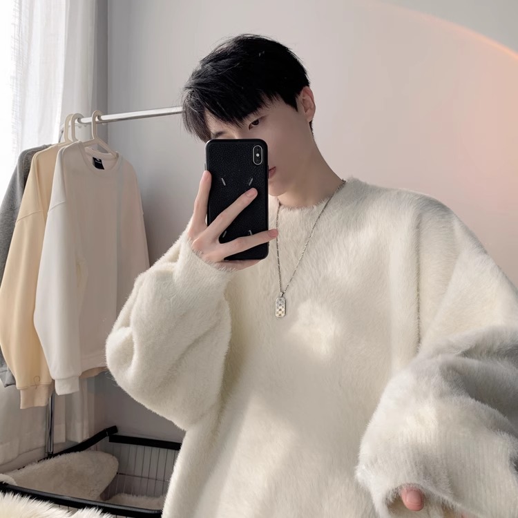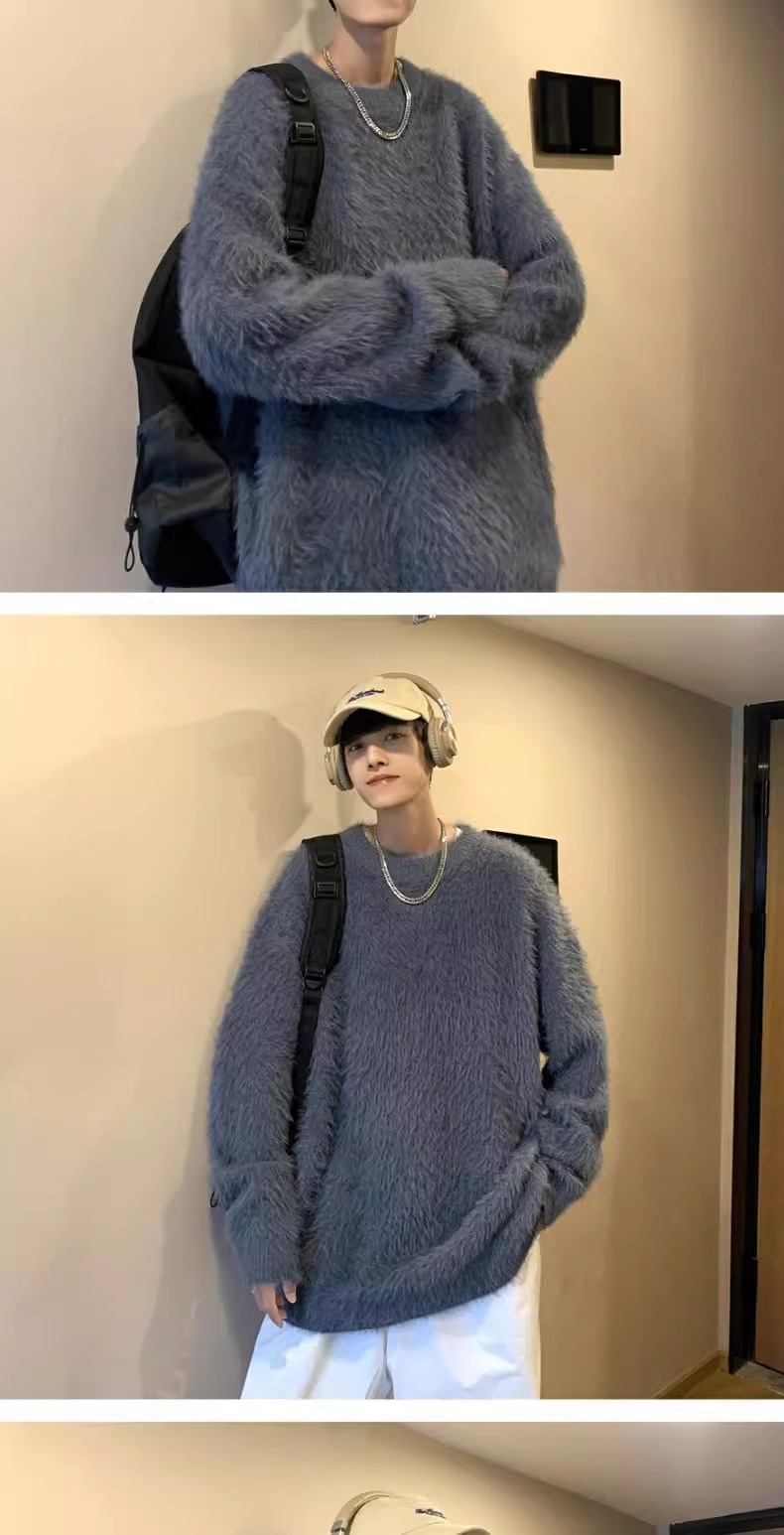 貂绒毛衣男秋冬季青少年慵懒风潮流宽松百搭休闲纯色针织衫