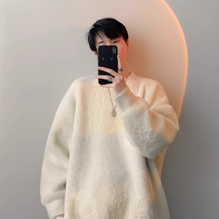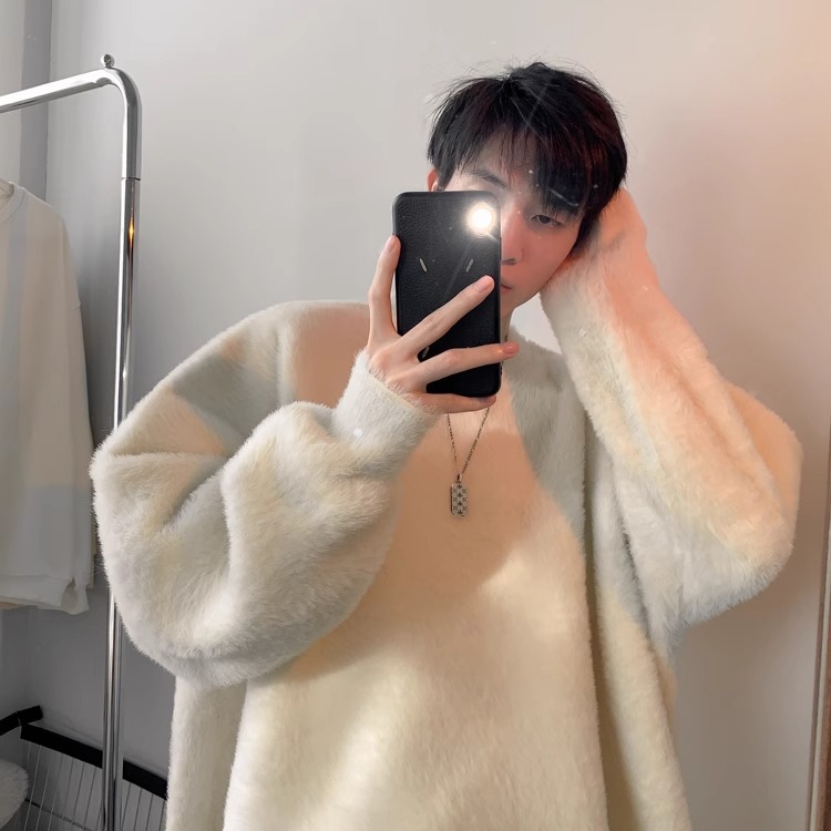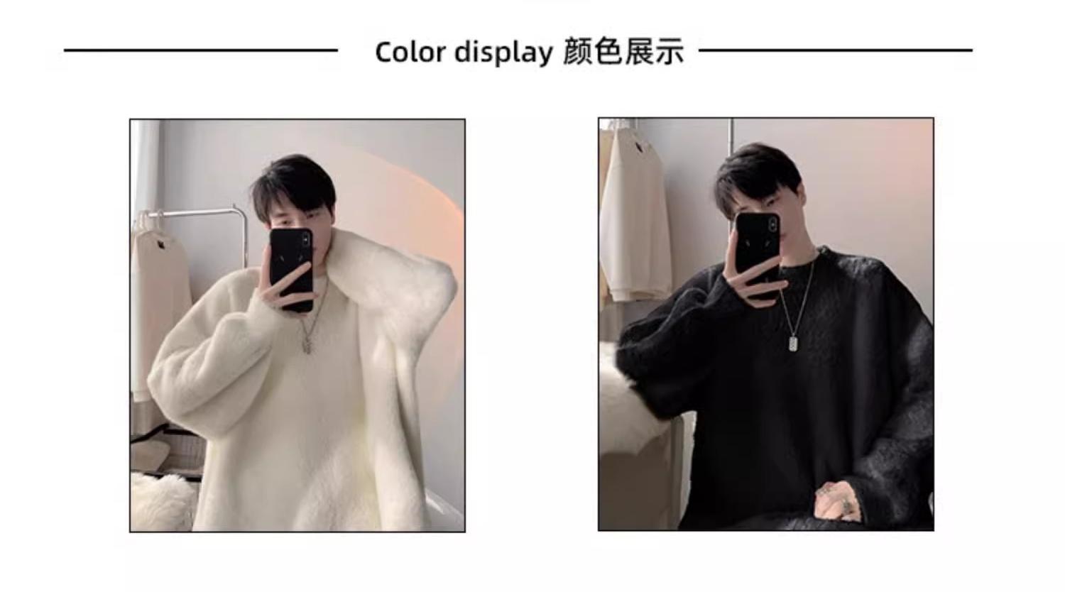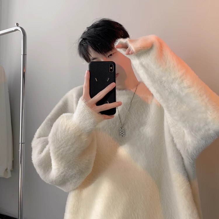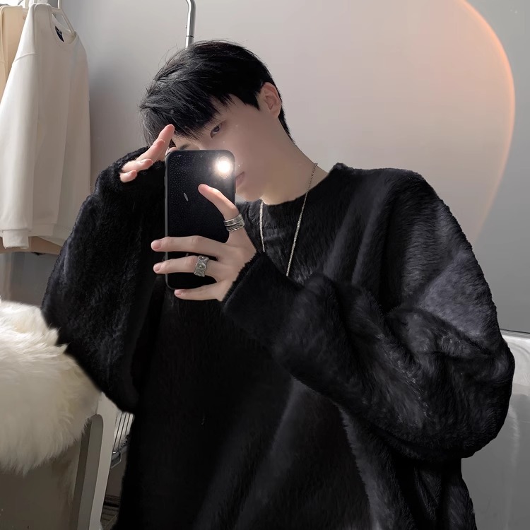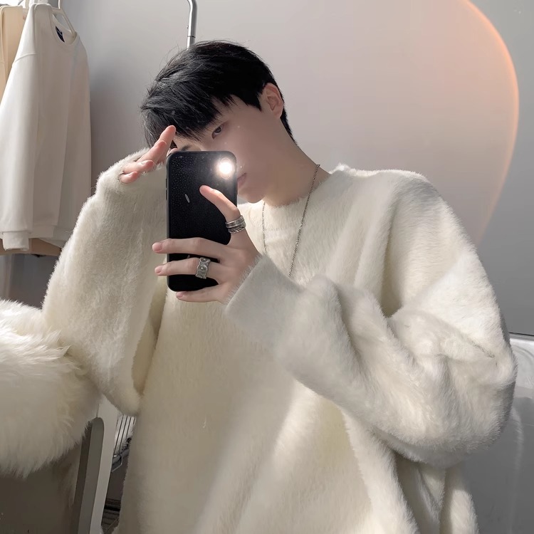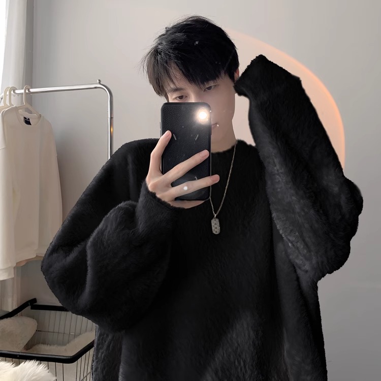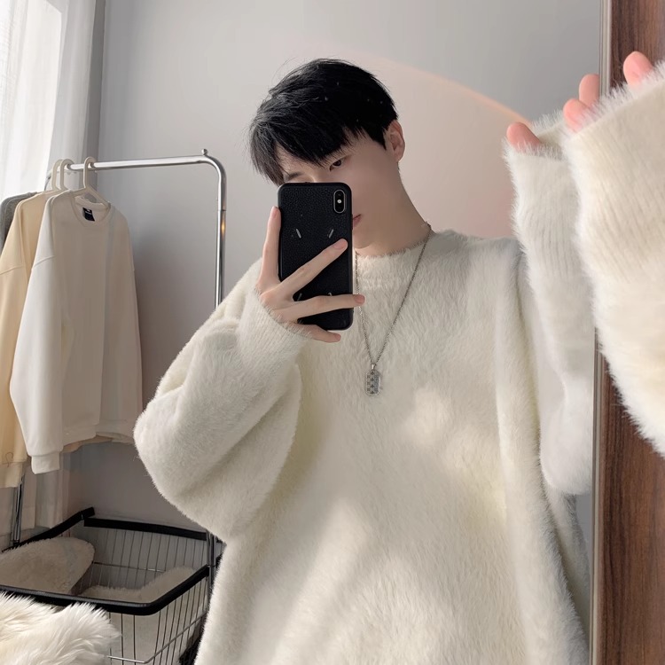 貂绒毛衣男秋冬季青少年慵懒风潮流宽松百搭休闲纯色针织衫