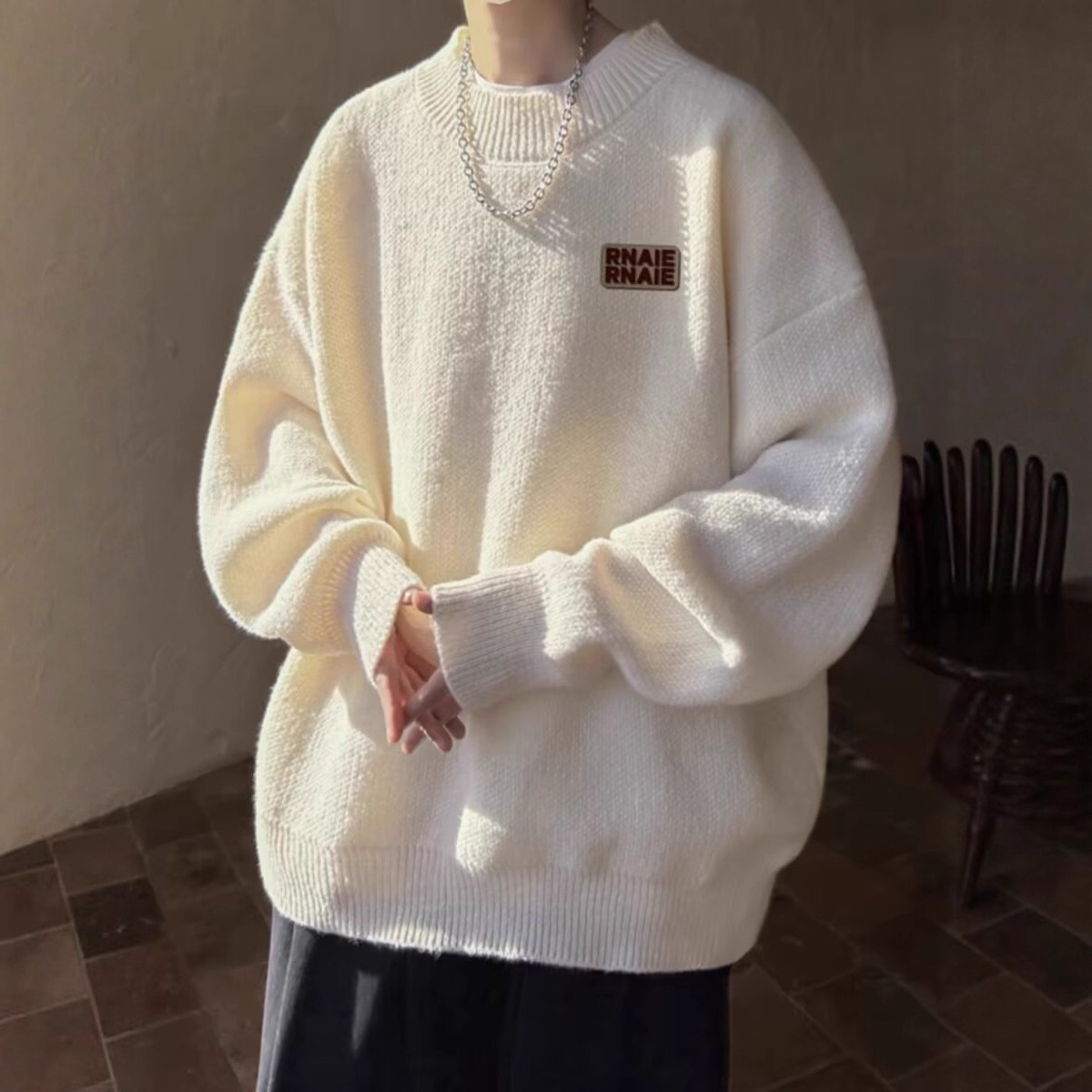 青少年毛衣男秋冬季慵懒风高级感潮牌宽松圆领男士内搭打底针织衫