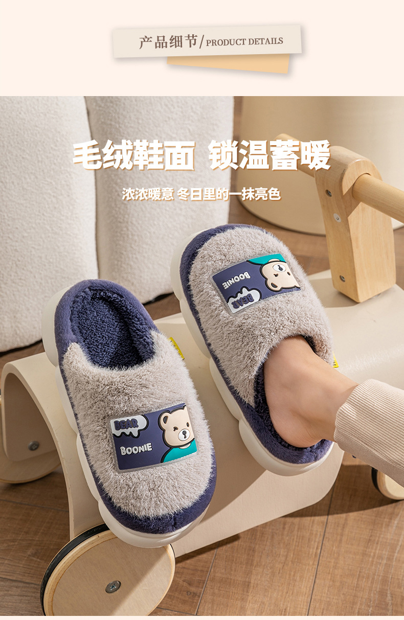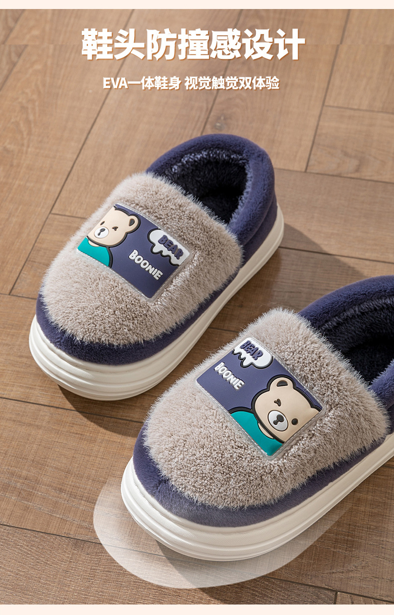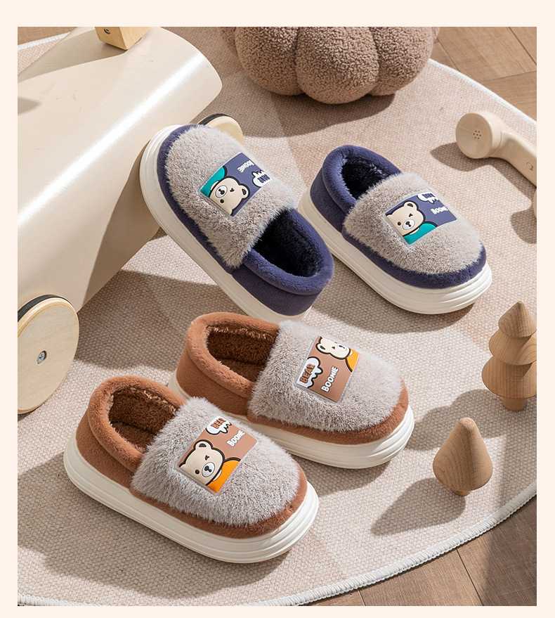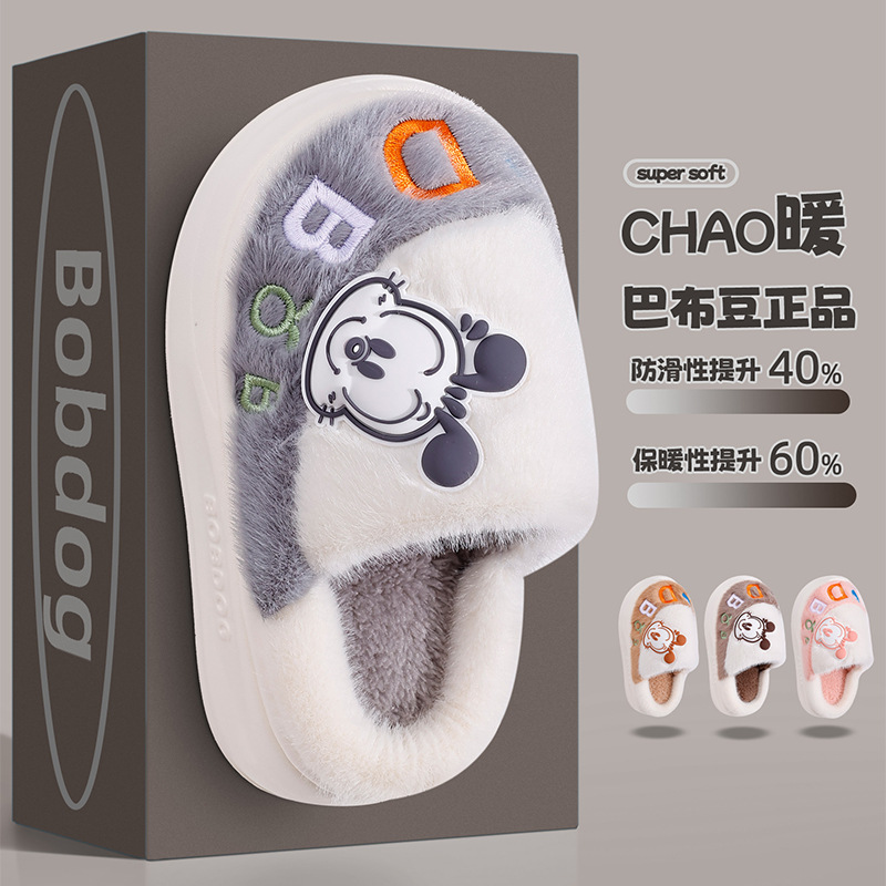 (严选)巴布豆儿童棉拖鞋加绒新款男童防滑冬季防滑棉鞋卡通毛拖