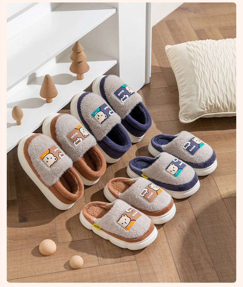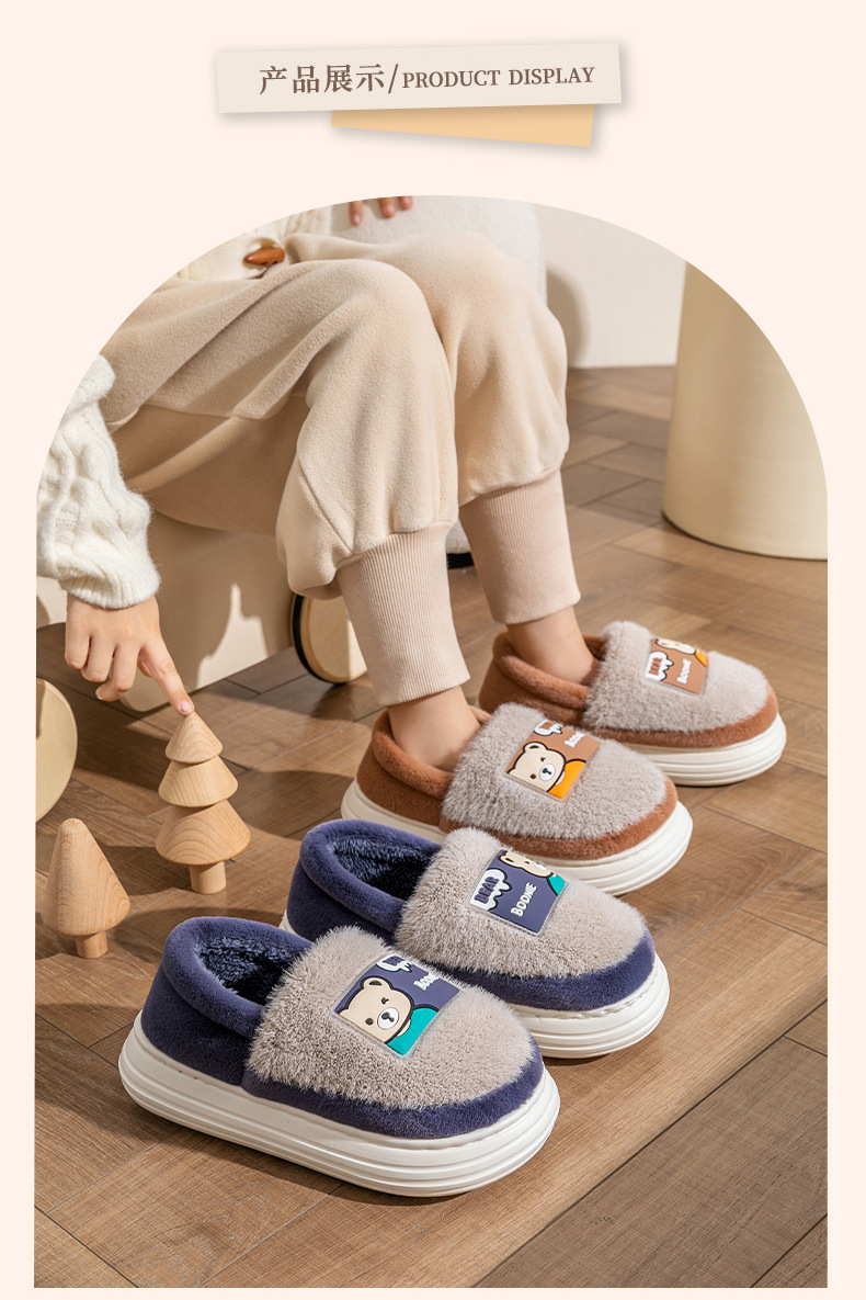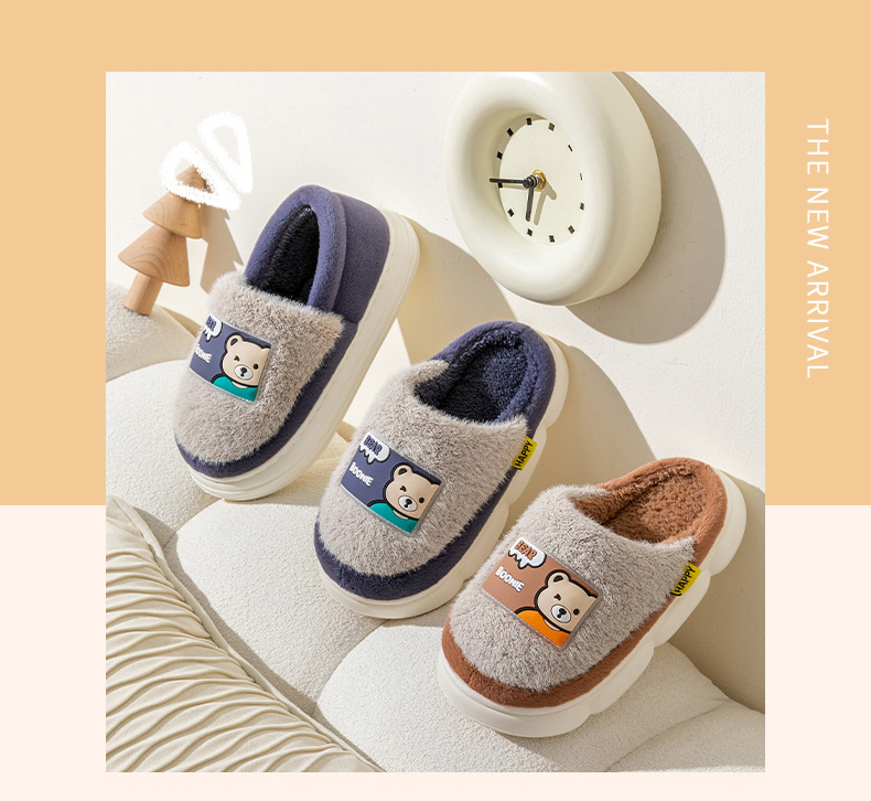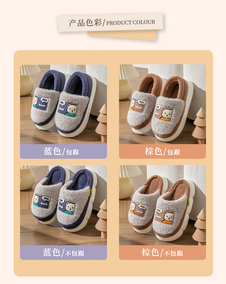 (严选)巴布豆儿童棉拖鞋加绒新款男童防滑冬季防滑棉鞋卡通毛拖