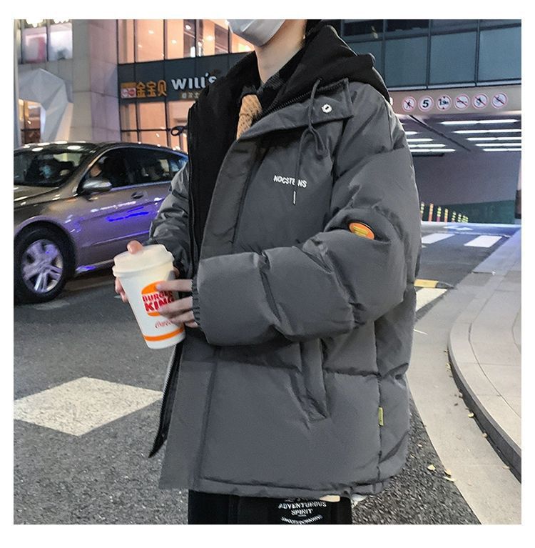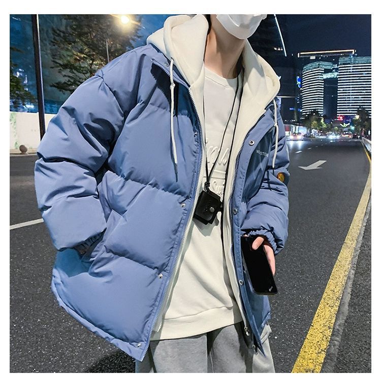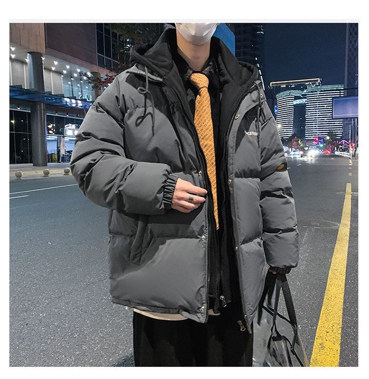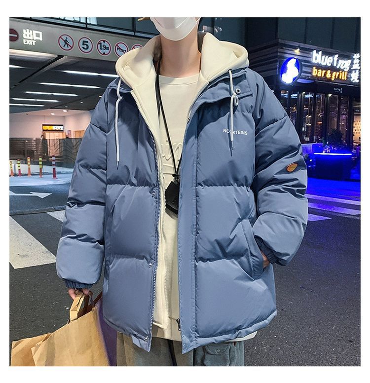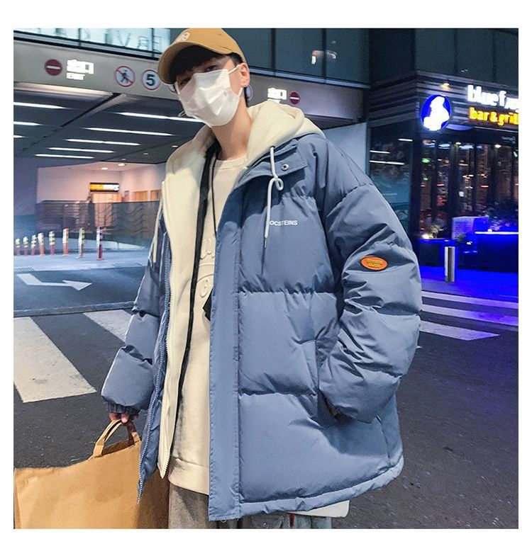 2枚の薄っぺらなダウンジャケットの男性秋冬のファッションカードを厚くして保温して帽子の綿入れの上着と冬のカジュアルコートを着ます。