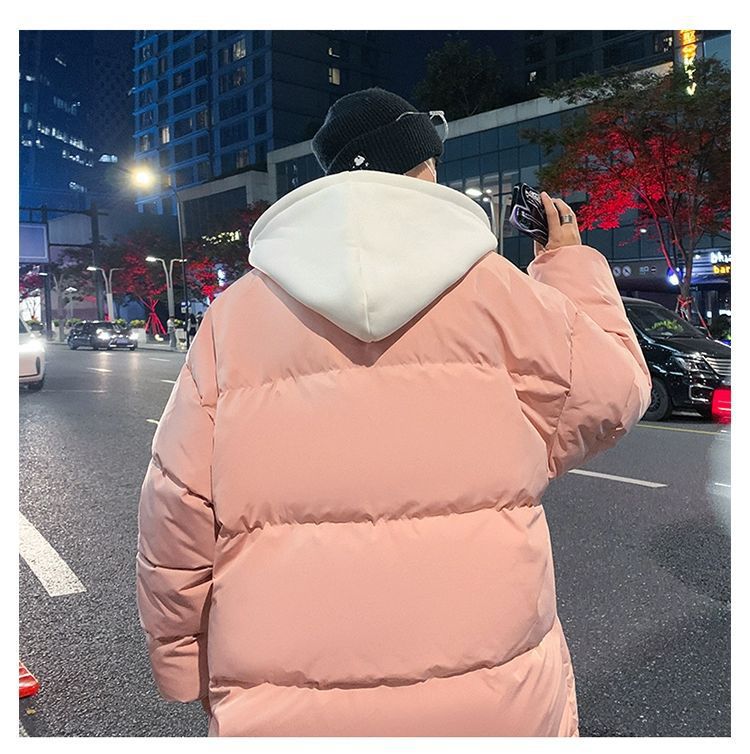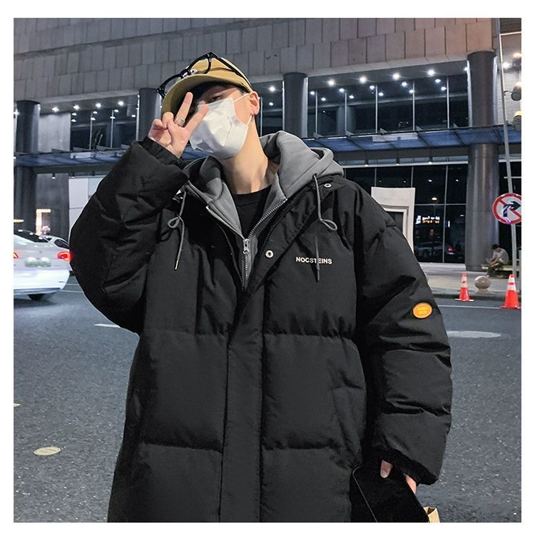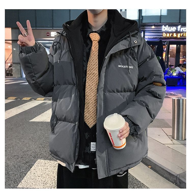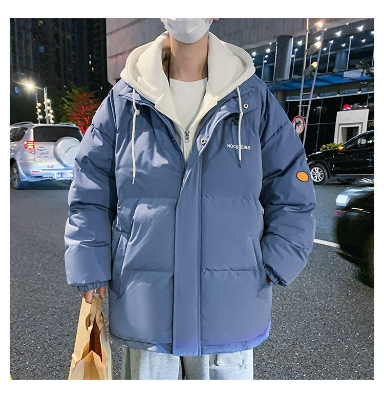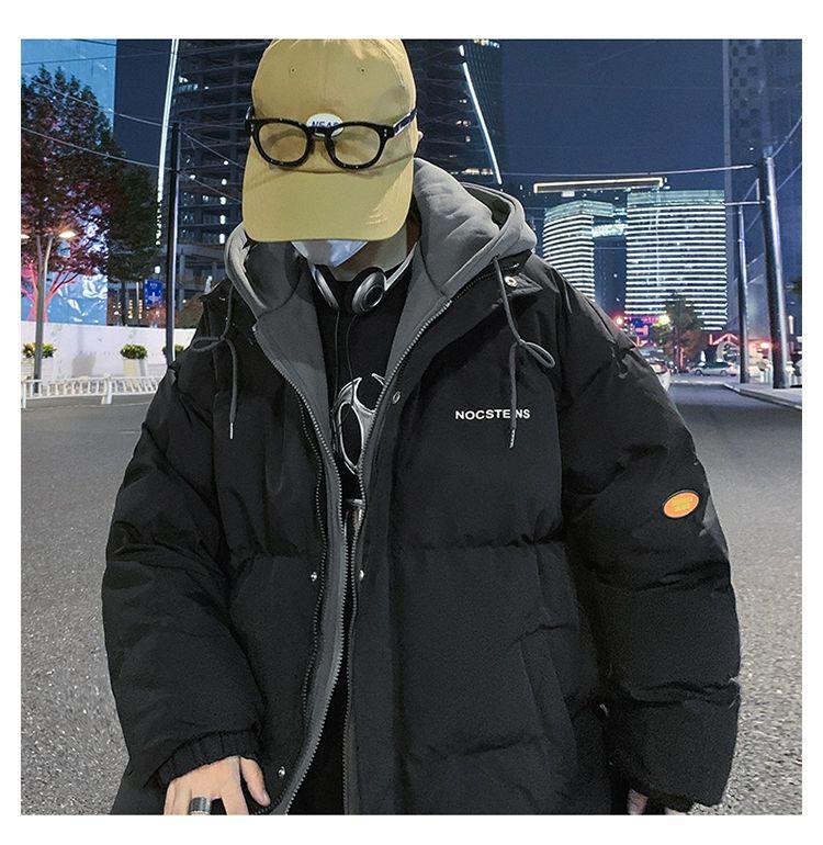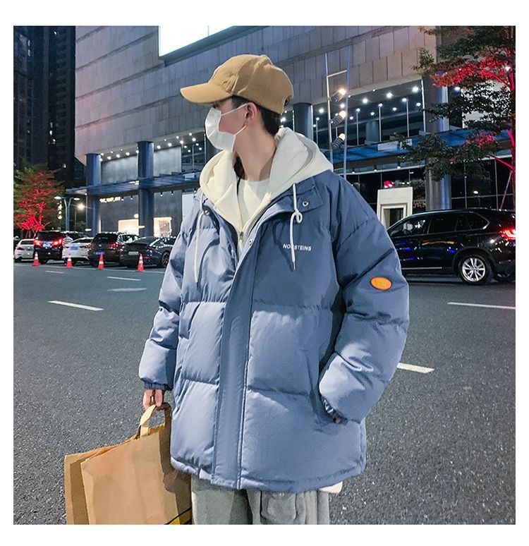 美式假俩件羽绒棉服男冬季潮牌宽松防寒连帽青少年面包服棉衣外套