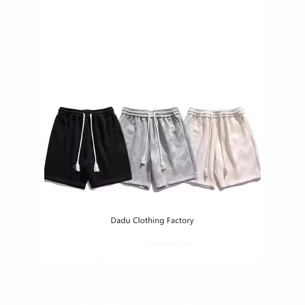 日本製無地ジャカード巾着ヘビーウェイトスポーツストレートレッグ5点パンツメンズ夏ゆったり万能カジュアルショートパンツミッドパンツ