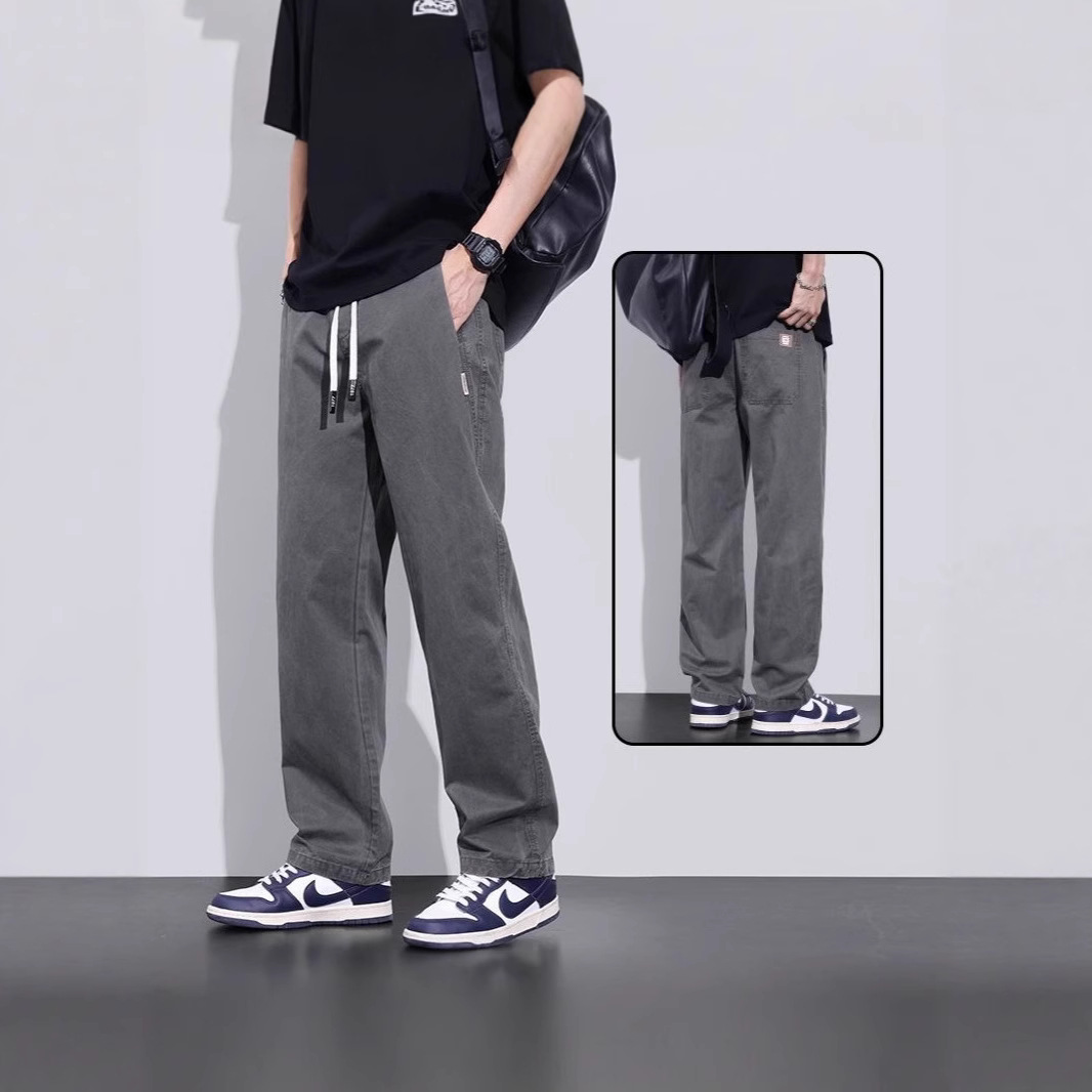 2025 新韓国スタイルメンズ春と秋のトレンディなルーズソリッドカラーメンズカジュアルパンツファッションスポーツパンツクロスボーダースタイル