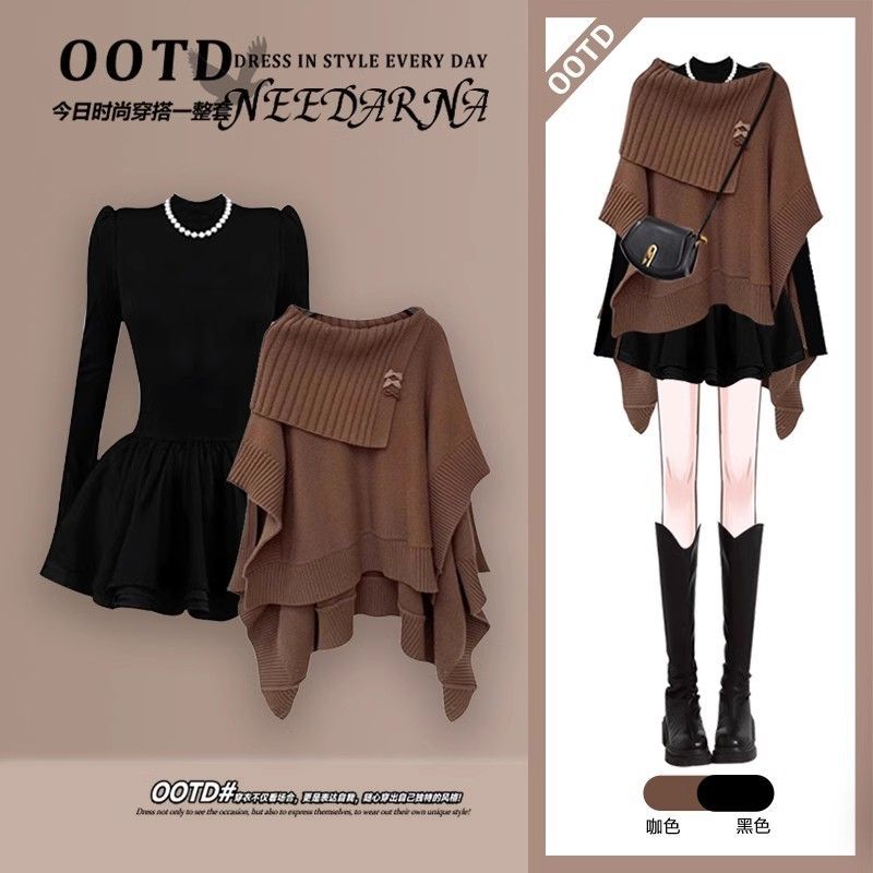 秋冬一整套女装感2025美拉德不规则针织衫搭轻奢连衣裙两件套