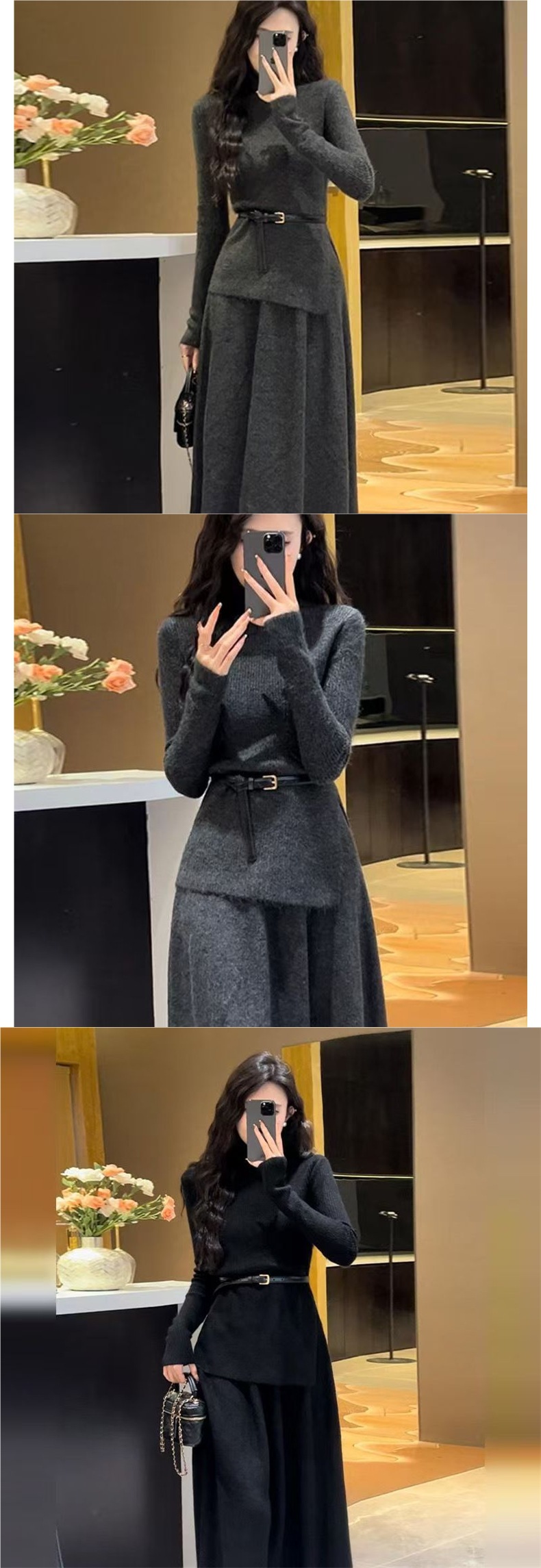 欧玛莱 秋冬季新款简约收腰显瘦设计感针织衫+半身裙两件套女5334