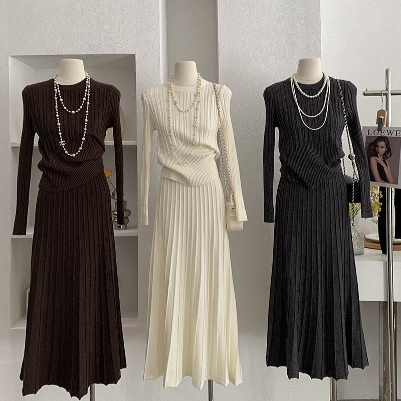 韩系穿搭针织两件套氛围感秋冬新款法式气质高级感毛衣半身裙套装